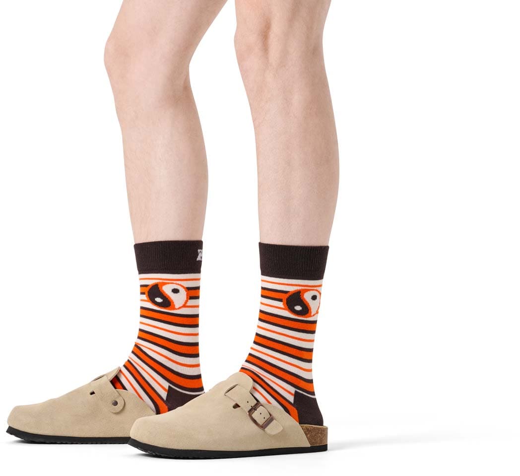 Mit unseren Yinyang Stripes Socks bringst du spielend Balance in deinen Style! Freche Streifen treffen auf das kultige Yinyang-Symbol am Bund – so bekommt jeder Schritt einen Hauch Zen. Perfekt für alle, die sich gerne authentisch zeigen und Lust auf das gewisse Etwas haben. Die starken Kontraste machen diese Socke zum echten Hingucker und bringen Harmonie in deinen Alltag.