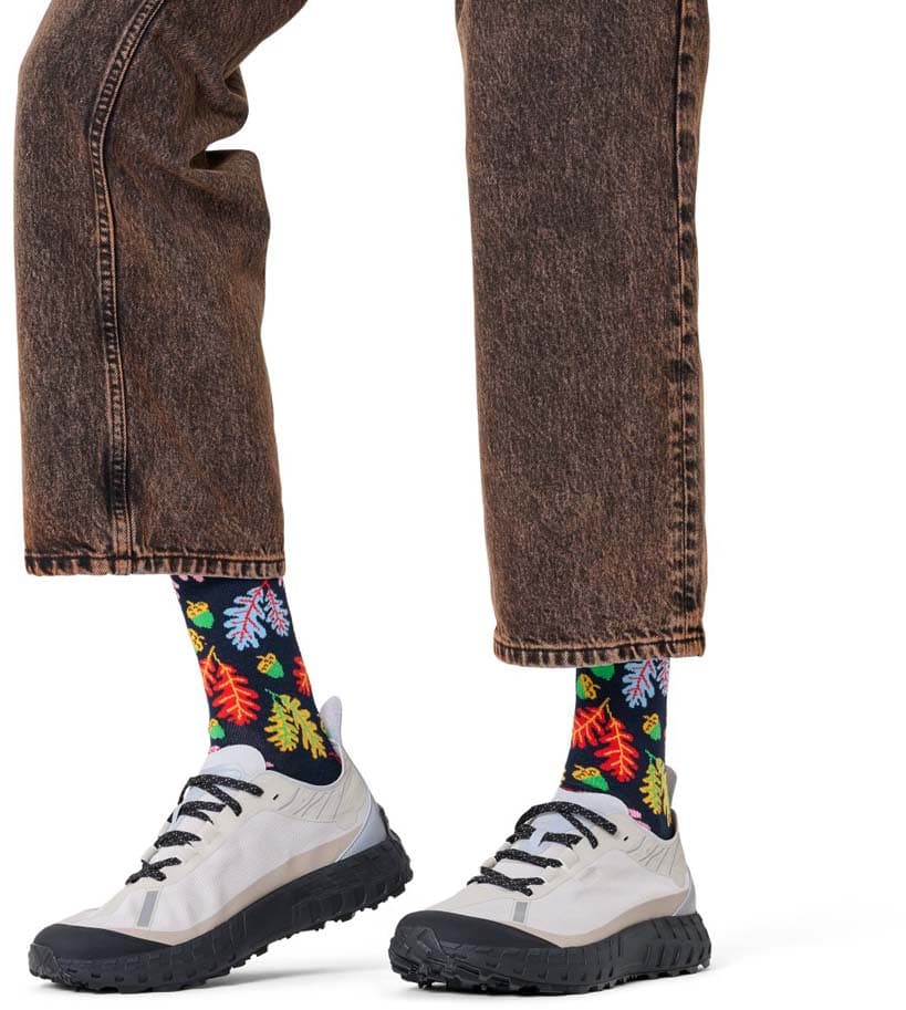 Verliebe dich in unsere schwarzen Acorn-Socken mit lebhaften Herbstblättern und Eichelmotiven, die deinem Outfit eine verspielte Note verleihen.