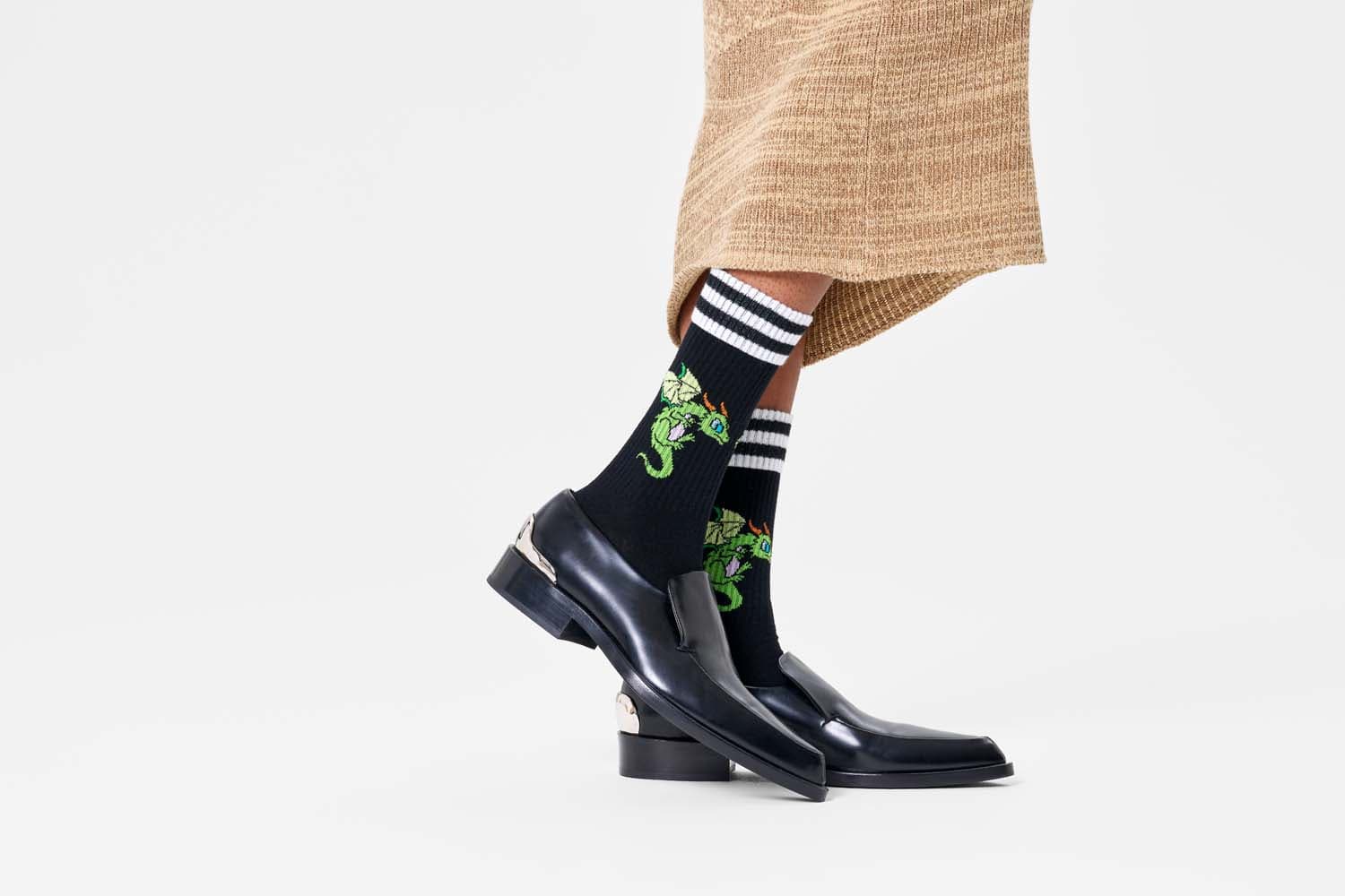 Es ist an der Zeit, dass du dich in den Anime-Protagonisten verwandelst, der du sein möchtest, und dich mit diesen Drachensocken für Sneaker-Liebhaber im Anime-Style von deiner besten Seite zeigst! Dieser sportliche, gerippte Style sitzt knapp unter der Wadenmitte und ist mit einer Fußgewölbestütze ausgestattet. Hergestellt aus weicher und atmungsaktiver gekämmter Baumwolle.