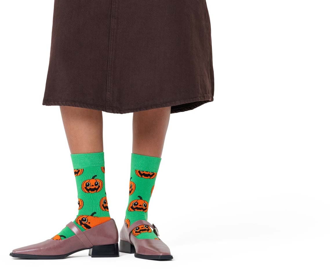 Komm in gruselige Stimmung mit unseren grünen Socken mit Kürbismuster, perfekt für Halloween und um deinem Outfit eine verspielte Note zu verleihen.