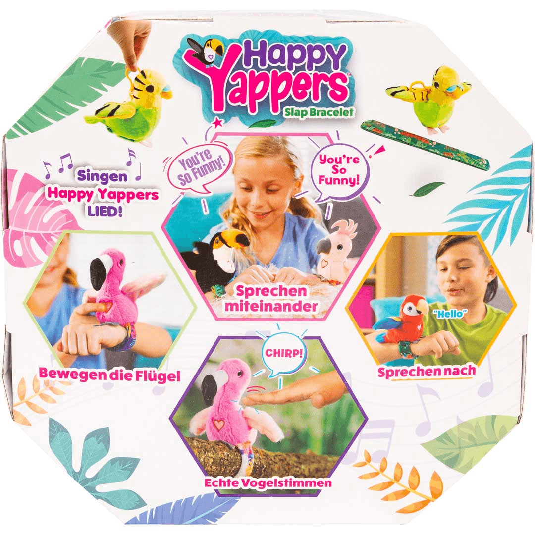 Im Nachsprech‑Modus wiederholt der Happy Yappers Kolibri gesprochene Worte und Geräusche mit einer lustigen Stimme. Zusätzlich kann per Knopfdruck das fröhliche Happy‑Yappers‑Lied abgespielt werden. Durch leichtes Antippen erzeugt der Vogel realistische Zwitschergeräusche, die das Spielerlebnis besonders lebendig machen.