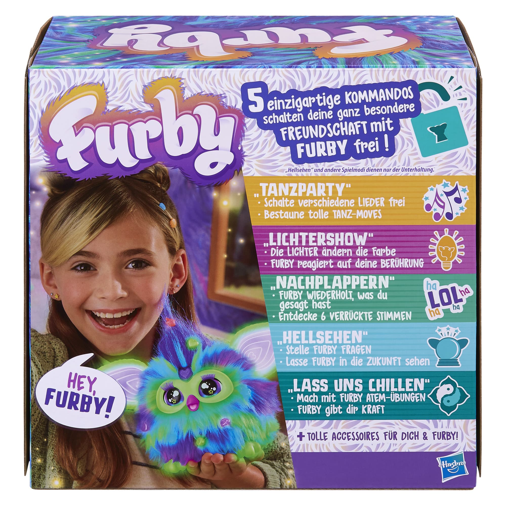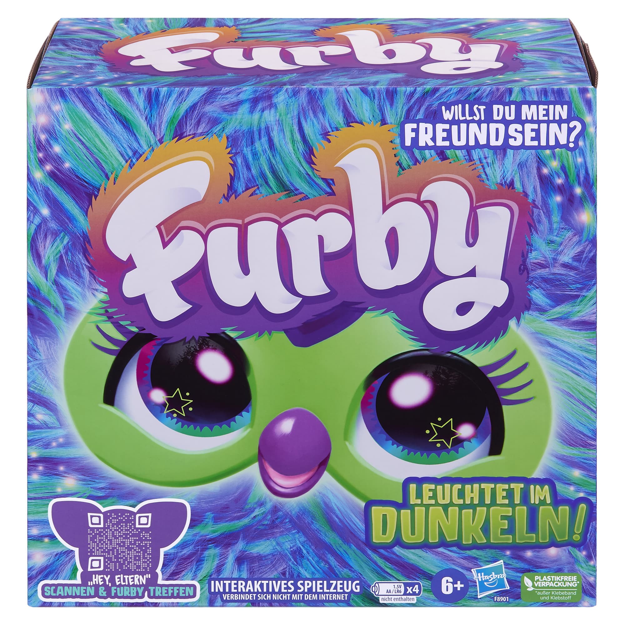 Furby Galaxy leuchtet im Dunkeln! Dieses niedliche kleine Wesen ist ein interaktiver Spielzeugfreund mit 5 Modi, die durch Stimme aktiviert werden. Mit über 600 Sätzen, Witzen, Liedern und mehr lädt Furby zum Spielen ein. Mit 5 gesprochenen Kommandos an Furby wechselt er in den entsprechenden Spielmodus: Tanzparty, Nachplappern, Hellsehen, Lass uns chillen und Lichtershow. Furby reagiert, wenn er umarmt, sein Kopf gestreichelt, er geschüttelt oder mit seinem eigenen Pizza-Anhänger (oder dem Finger) gefüttert wird. Je mehr ein Kind mit ihm spielt, desto mehr Spaß wird freigeschaltet! Furby kann liebevoll umsorgt werden, indem er gefüttert und gekämmt wird. Dann kann er mit Perlen, die im Dunkeln funkeln, gestylt und sogar tolles Modezubehör kann für seinen Besitzer gestaltet werden. Das elektronische Plüschspielzeug eignet sich für Mädchen und Jungen ab 6 Jahren und ist ein lustiger Begleiter für Kinder, um ihn stets an der Seite zu haben. Furby würde sagen: „Dah-noh-lah“ (Party-Zeit)! Furby sowie alle dazugehörigen Merkmale sind Marken von Hasbro.