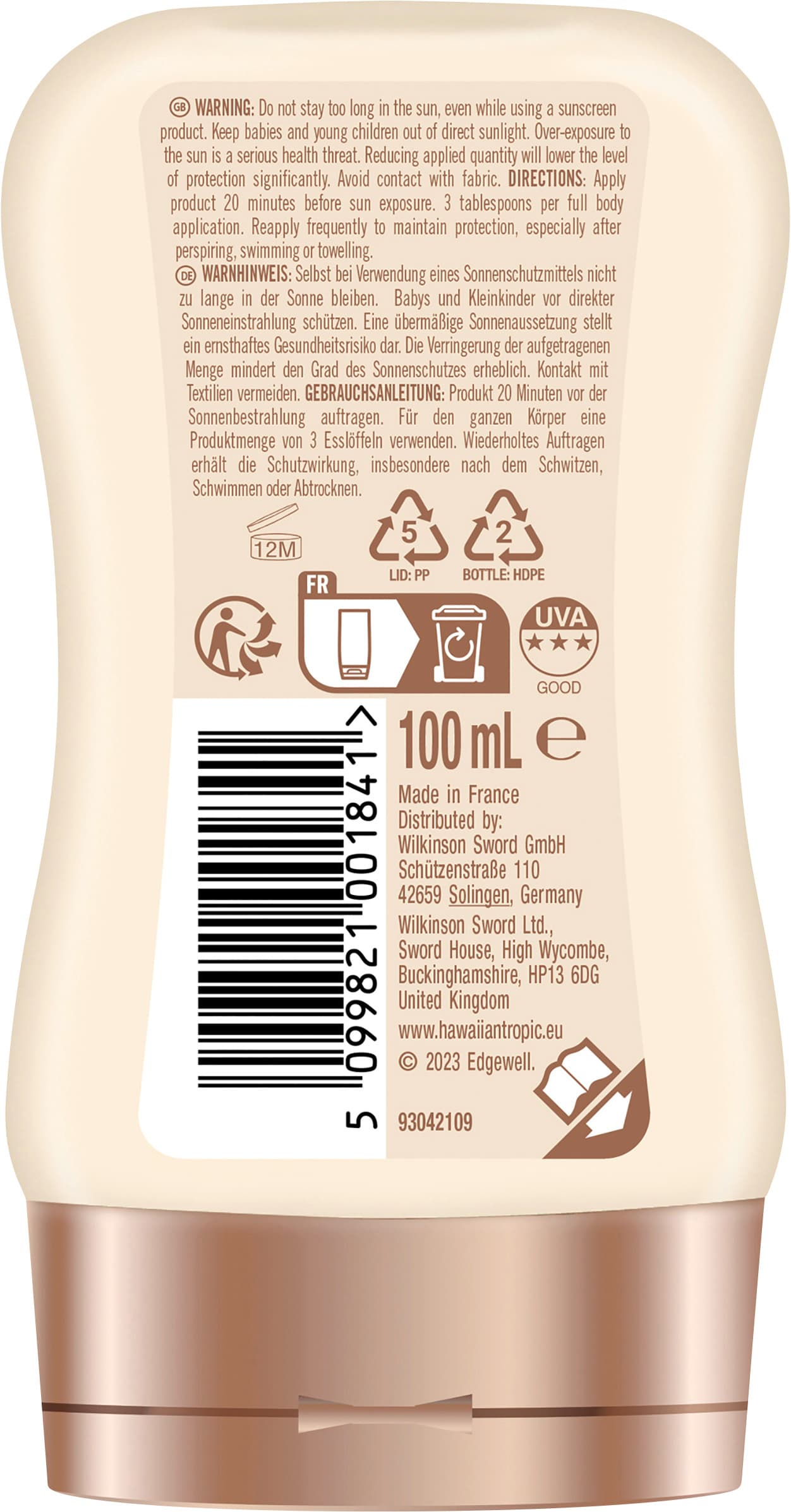 Schütze deine Haut mit unserer verwöhnenden Formel, die einen Lichtschutzfaktor 30 sowie UVA- und UVB-Schutz in Lotionform bietet. Die schützende Lotion ist wasserfest, sorgt für lang anhaltenden Sonnengenuss und entführt dich durch den tropischen Duft in ein exotisches Paradies auf Hawaii. Mit Sheabutter und Vitamin E schützt und pflegt diese Sonnenlotion deine Haut und verleiht ihr ein wunderschönes, transparentes Finish, ohne die Wirksamkeit zu beeinträchtigen. Verwöhnender Schutz für deine Haut- tropisch inspiriert.