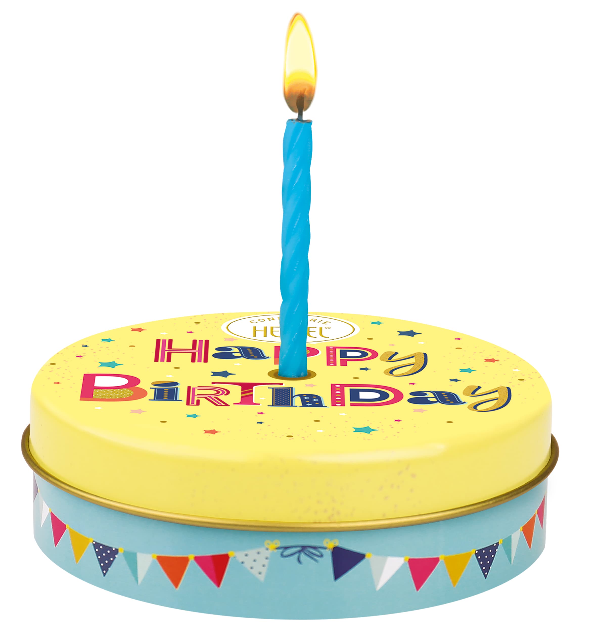 Mit diesem liebevoll gestalteten Mitbringsel gratulieren Sie auf ganz besondere Weise. Die Dose bietet Platz für eine Kerze, die sofort eingesteckt, angezündet und von Herzen gefeiert werden kann. Nach dem Auspusten darf der Beschenkte einen Wunsch frei haben und sich an den köstlichen Schokopralinen mit zarter Milchcremefüllung erfreuen. Ein rundum perfektes Geschenk, das Freude macht!