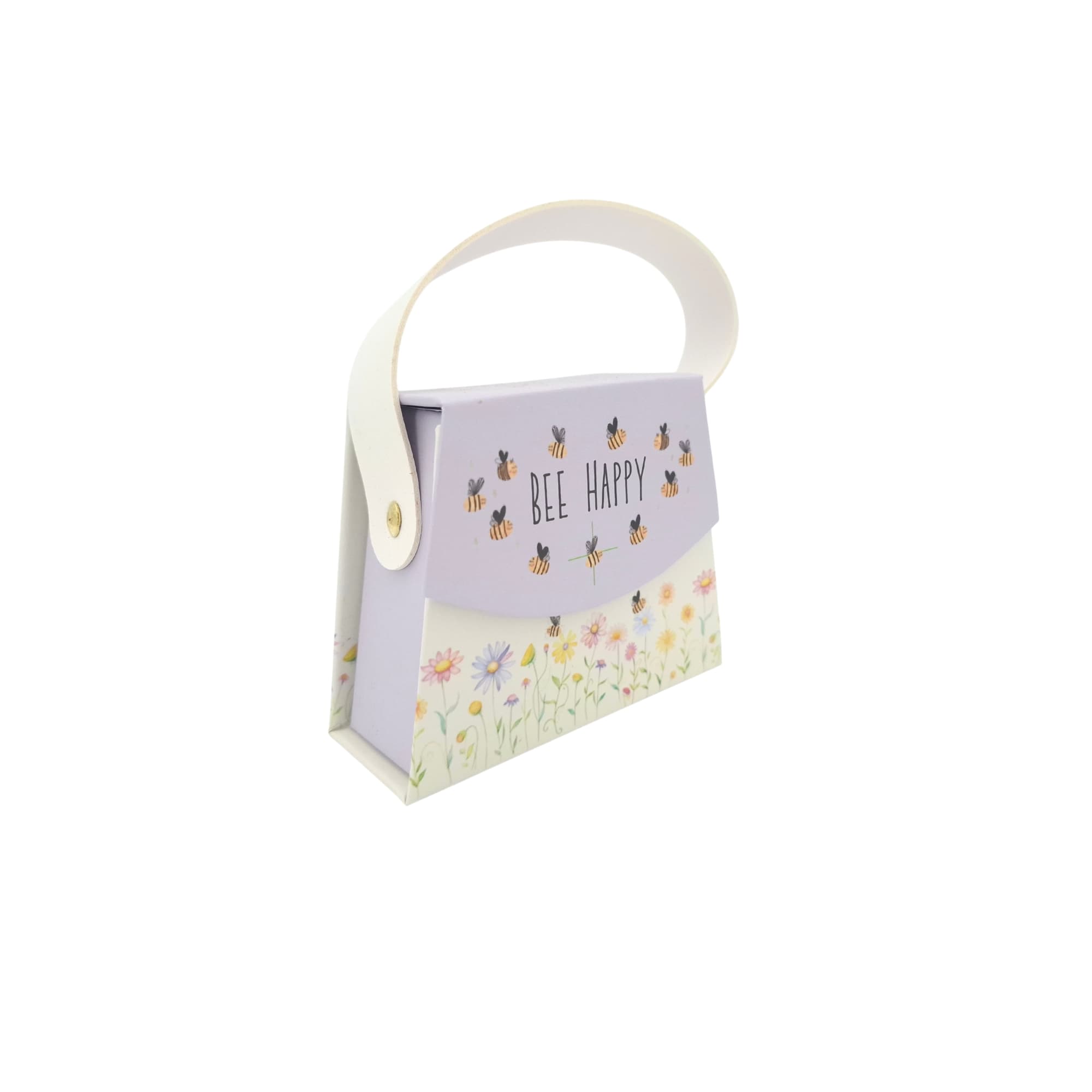 Handtaschen Geschenkverpackung mini mit Magnetverschluss und Henkel aus Kunstleder.