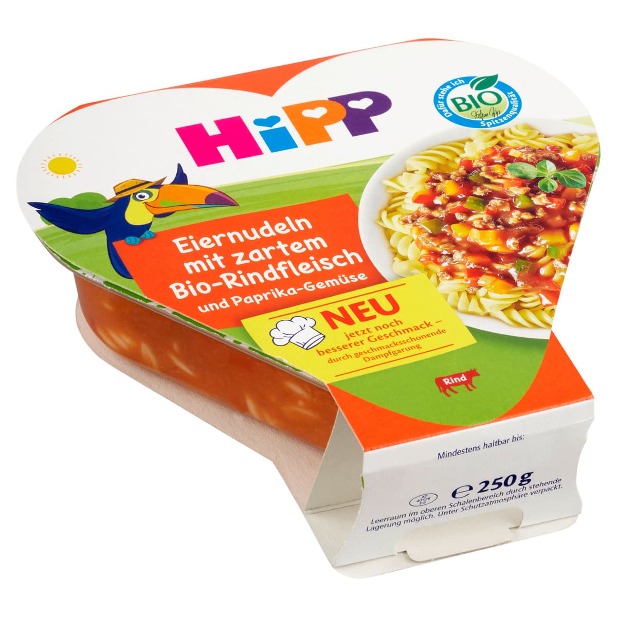 HiPP Bio Eiernudeln mit zartem Bio-Rindfleisch und Paprika-Gemüse