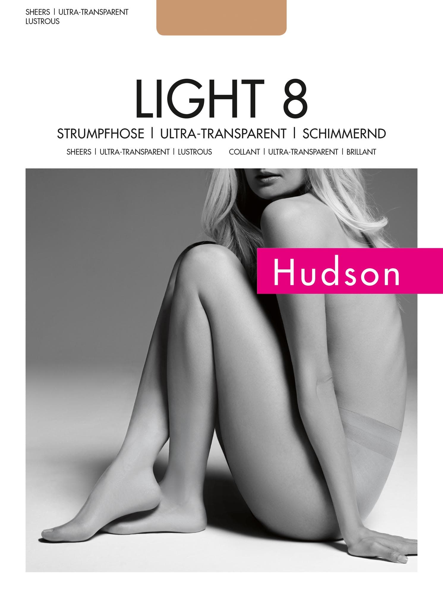 Durchgehend transparent, sowie supersoft und hochelastisch. Mit Mikrospitze. Die LIGHT 8 Serie ist die leichteste Serie aus dem Hause Hudson. Die Strümpfe dieser Serie eignen sich perfekt um Ihren Teint zu perfektionieren. Die ultra transparenten und super feinen Strümpfe dieser Serie verleihen Ihren Beinen den perfekten Nude Look und sind dabei kaum sichtbar. Die LIGHT 8 Serie wird aus bikomponenten hoch transparenten Garnen gefertigt, wobei der Kern elastisch und die Umhüllung unelastisch ist. Dank der unverstärkten Ferse eignen sich Strümpfe dieser Serie auch optimal für offene Schuhe, da sowohl Strumpfbein als auch Spitze die gleiche Stärke aufweisen.