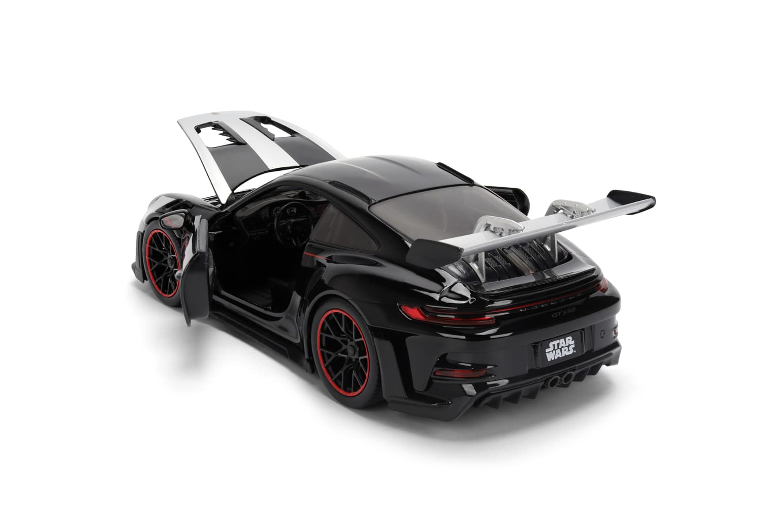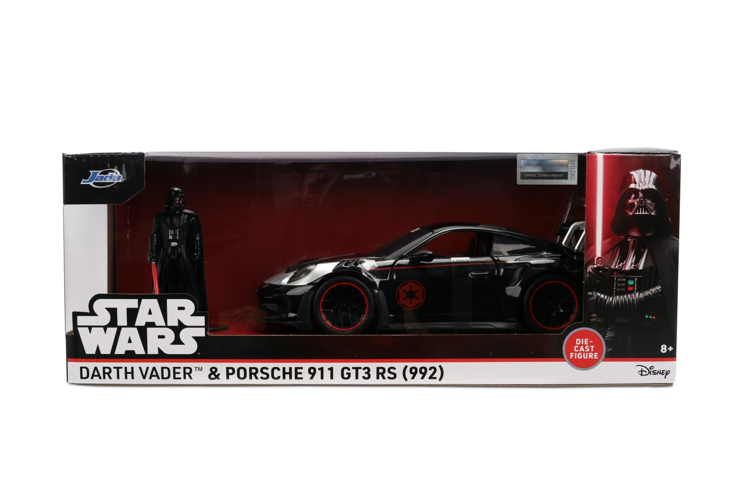 Jada Toys Star Wars Auto Porsche 911 GT3 RS Darth Vader (19 cm) – Modellfahrzeug aus Metall im Maßstab 1:24 mit Türen und Motorhaube zum Öffnen, inkl. Figur, für Sammler & Kinder ab 8 Jahren, lizenziert von Porsche