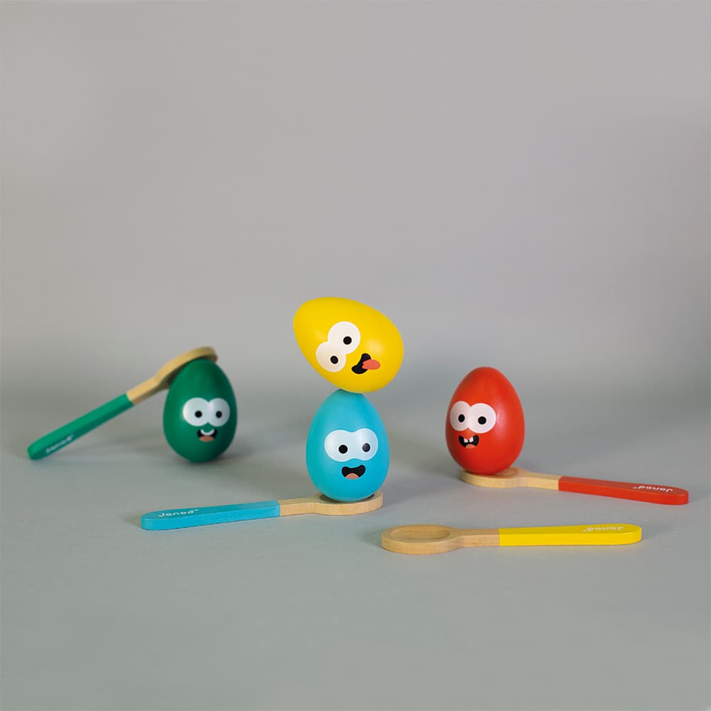 3 … 2 … 1 … Los geht’s! Mit dem klassischen Geschicklichkeitsspiel „Eierlauf“ von Janod erleben Kinder ab 3 Jahren spannende Rennen voller Spaß und Bewegung. Ziel ist es, das Ei auf dem Löffel sicher ins Ziel zu bringen – ohne es fallen zu lassen. Das Set enthält vier bunte Holzeier und vier passende Holzlöffel, ideal für Geburtstagsfeiern, Gartenfeste oder Nachmittage mit Freunden. Beim Balancieren trainieren Kinder ihre Koordination, ihr Gleichgewicht und ihre Konzentration. Und das Beste: Kein Ei geht zu Bruch! Ein langlebiges Spiel aus nachhaltig produziertem Holz, das für gute Laune sorgt und ganz ohne Aufräumen auskommt.