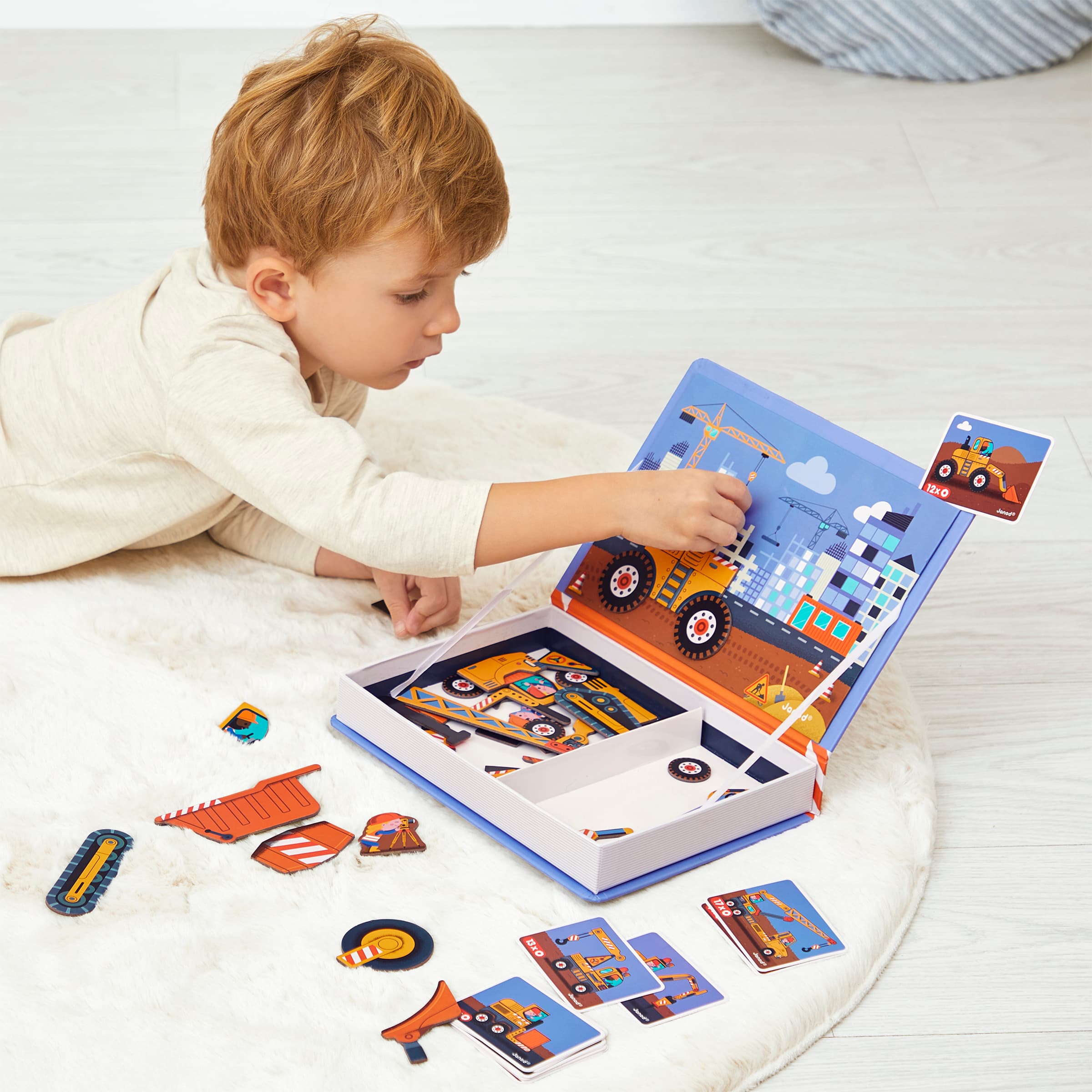 Magneti'Book „Baustelle“ – Kreatives Lernspiel mit 50 Magneten aus nachhaltig produzierter Pappe für Kinder ab 3 Jahren