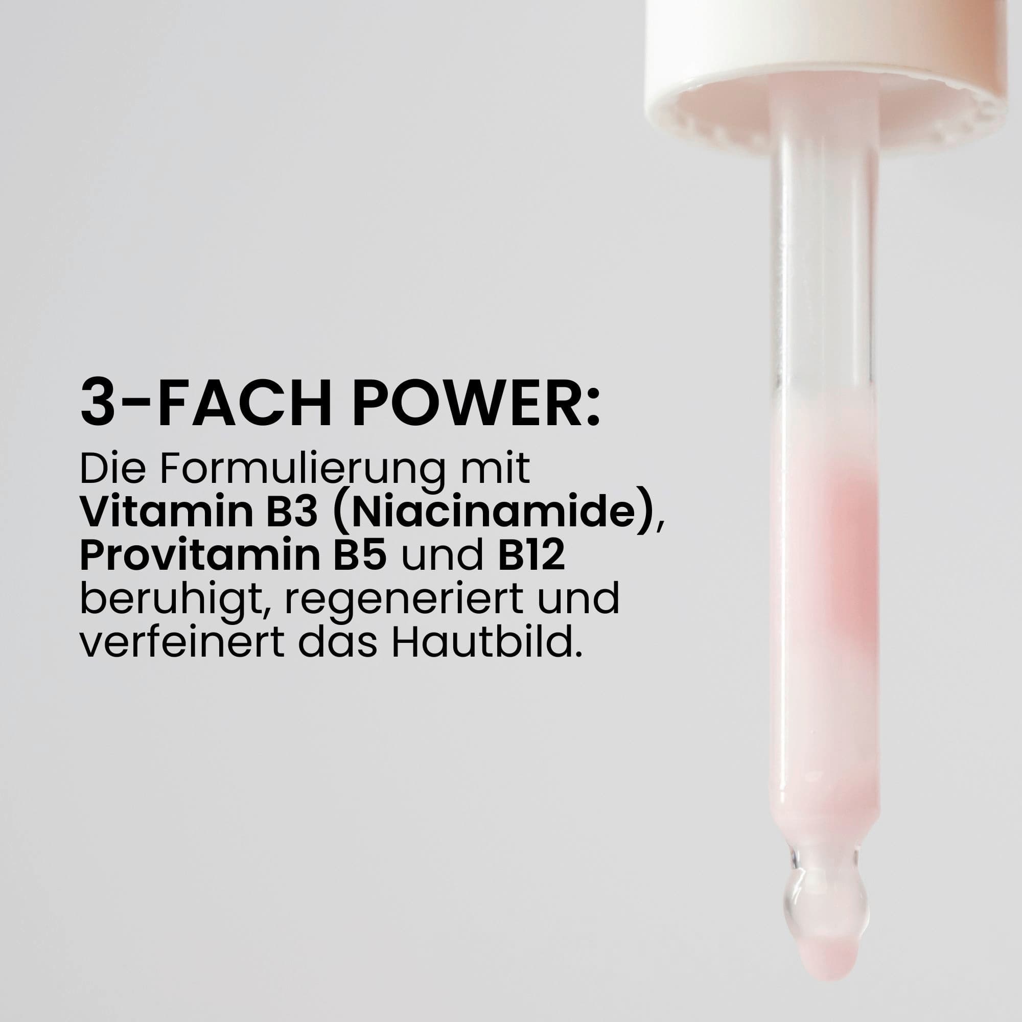 ideal für jeden Hauttyp,Spendet wohltuende Feuchtigkeit,Sorgt für ein ebenmäßigeres Hautbild,Milchige Emulsion, leicht wie ein Serum ​,mit einer natürlichen, zartrosanen Einfärbung - Vitamin B12 gilt als pinkes Vitamin und verleiht dem Serum daher eine zart rosa Einfärbung