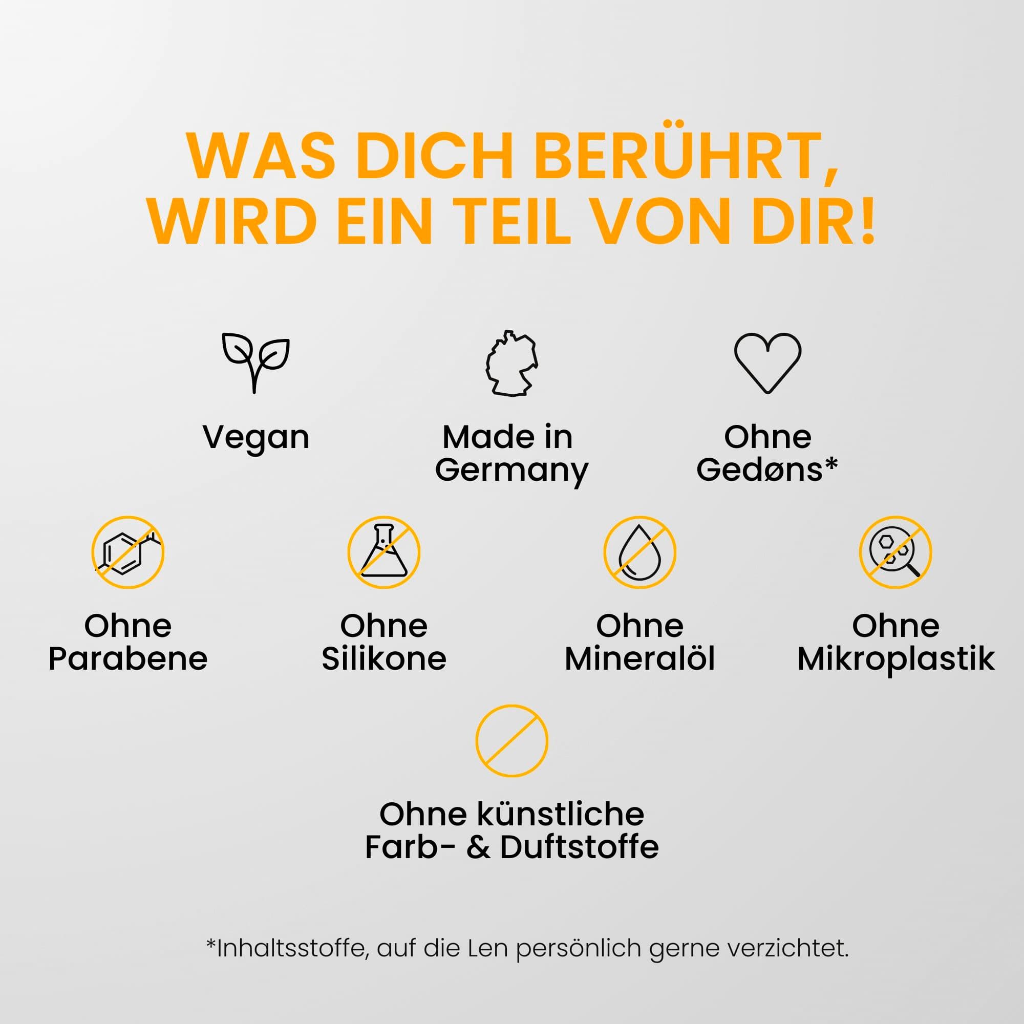 Eigenschaftenohne Alkohol|ohne Mineralöle|ohne Parabene|ohne Silikone|ohne tierische Inhaltsstoffe