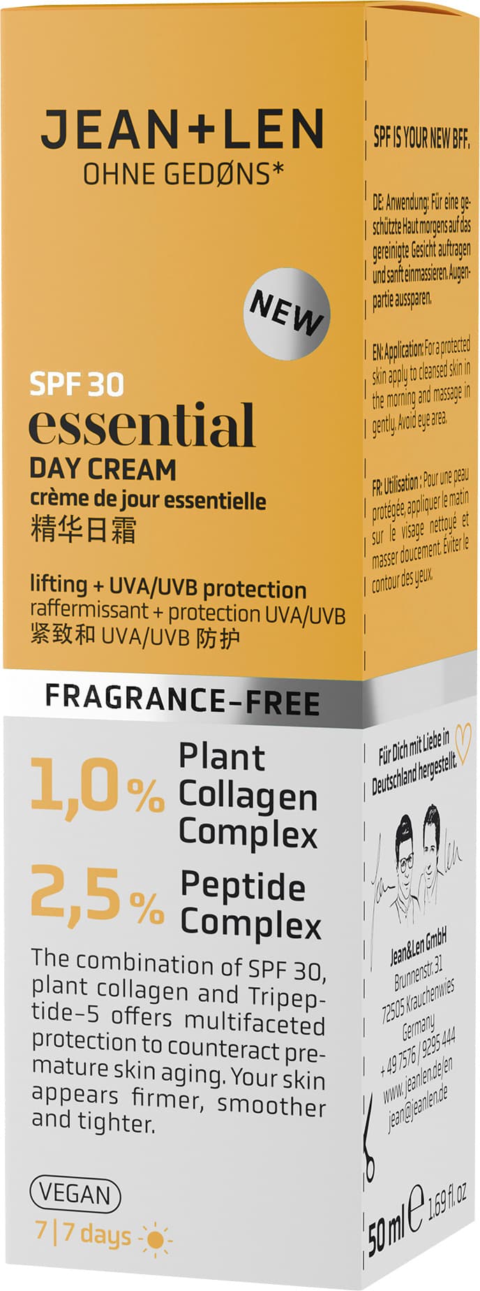 ideal für jeden Hauttyp,Erhält die Jugendlichkeit der Haut: 1% Phyto-Kollagen-Komplex&2,5% Peptid-Komplex schützen vor lichtbedingter, vorzeitiger Hautalterung,Verbessert die Hautelastizität, glättet&reduziert die Faltentiefe​,1% Phyto-Kollagen-Komplex&2,5% Peptid-Komplex stimulieren die Kollagen-Synthese&unterstützen die Hauterneuerungsprozesse,Optimiert die Hautfestigkeit,Creme mittlerer Reichhaltigkeit