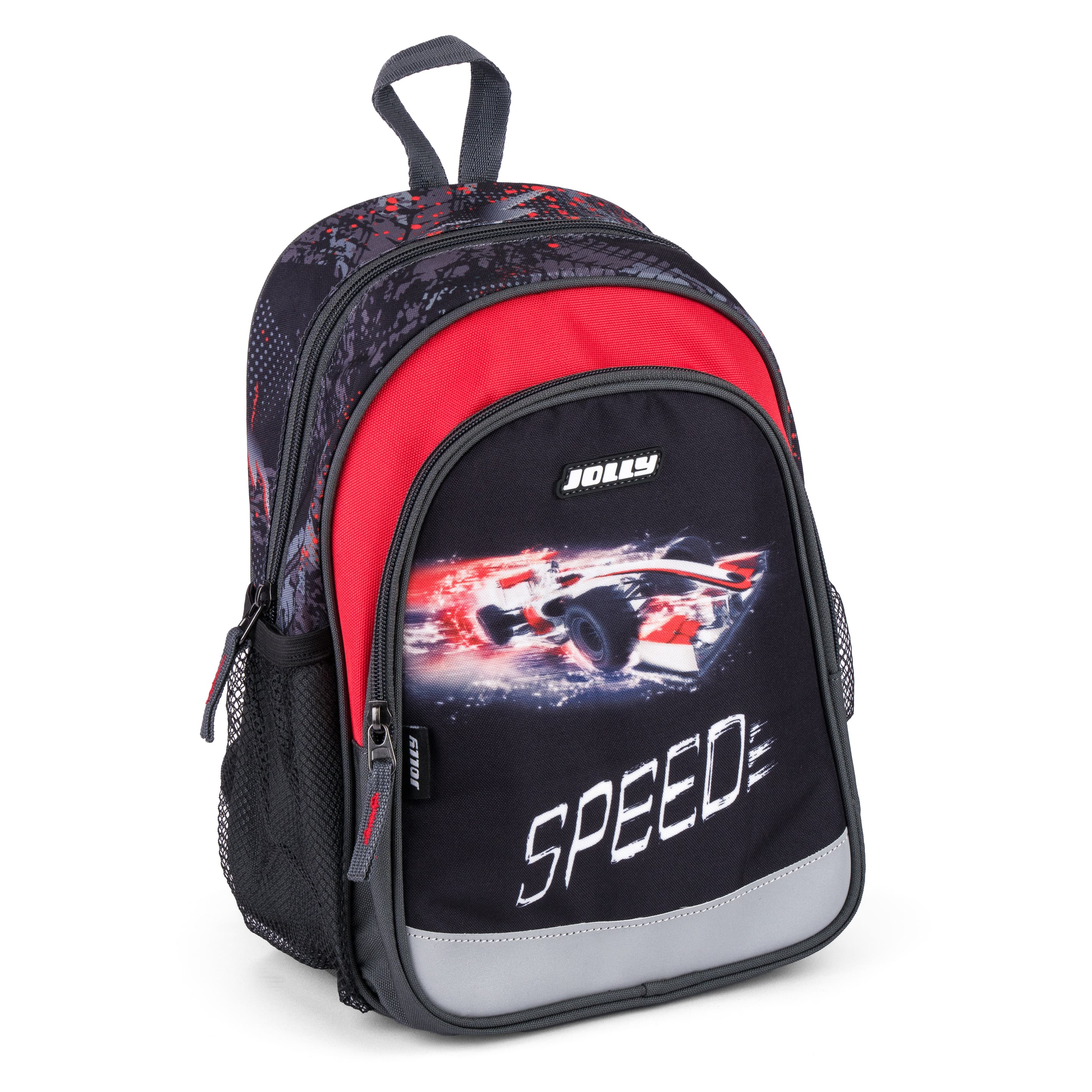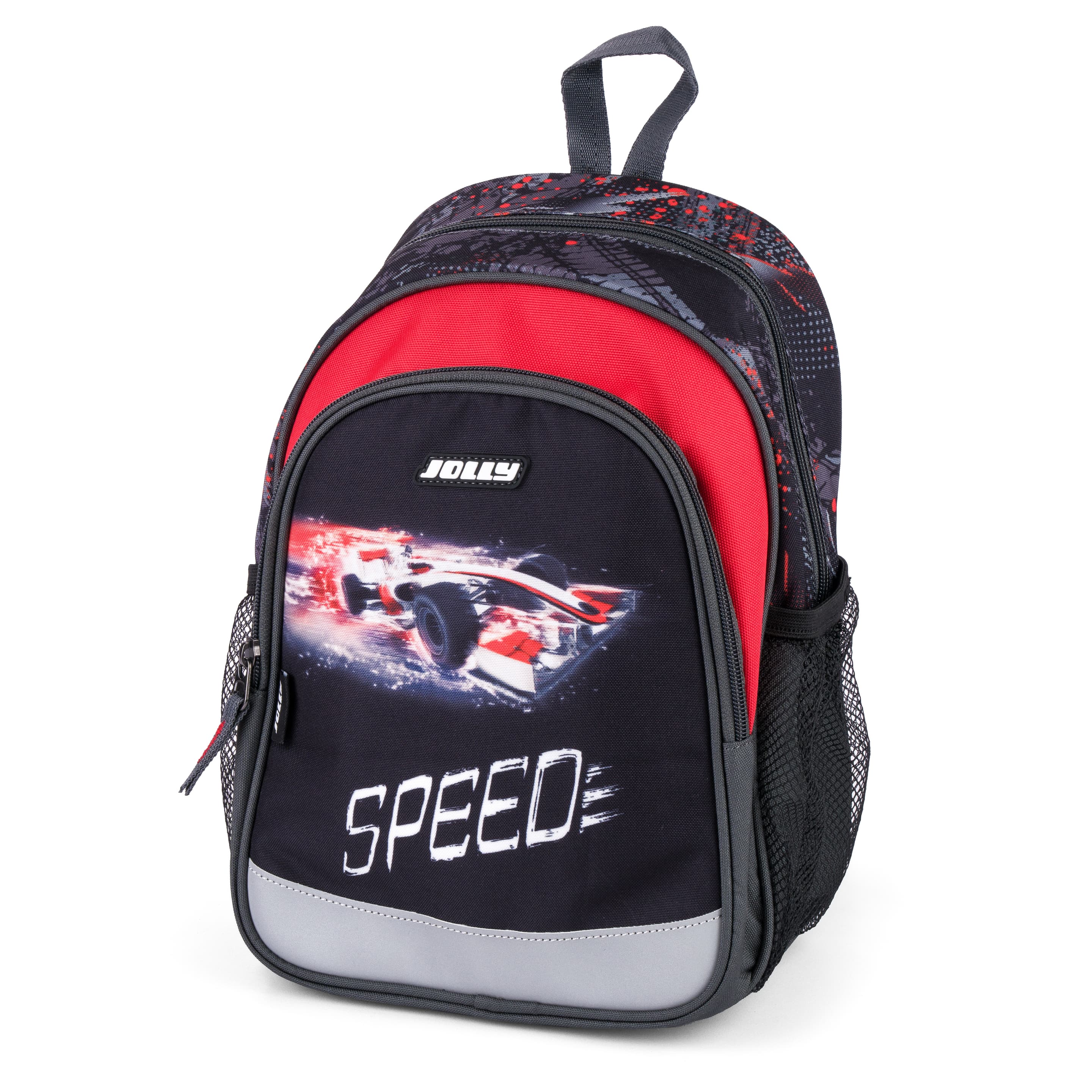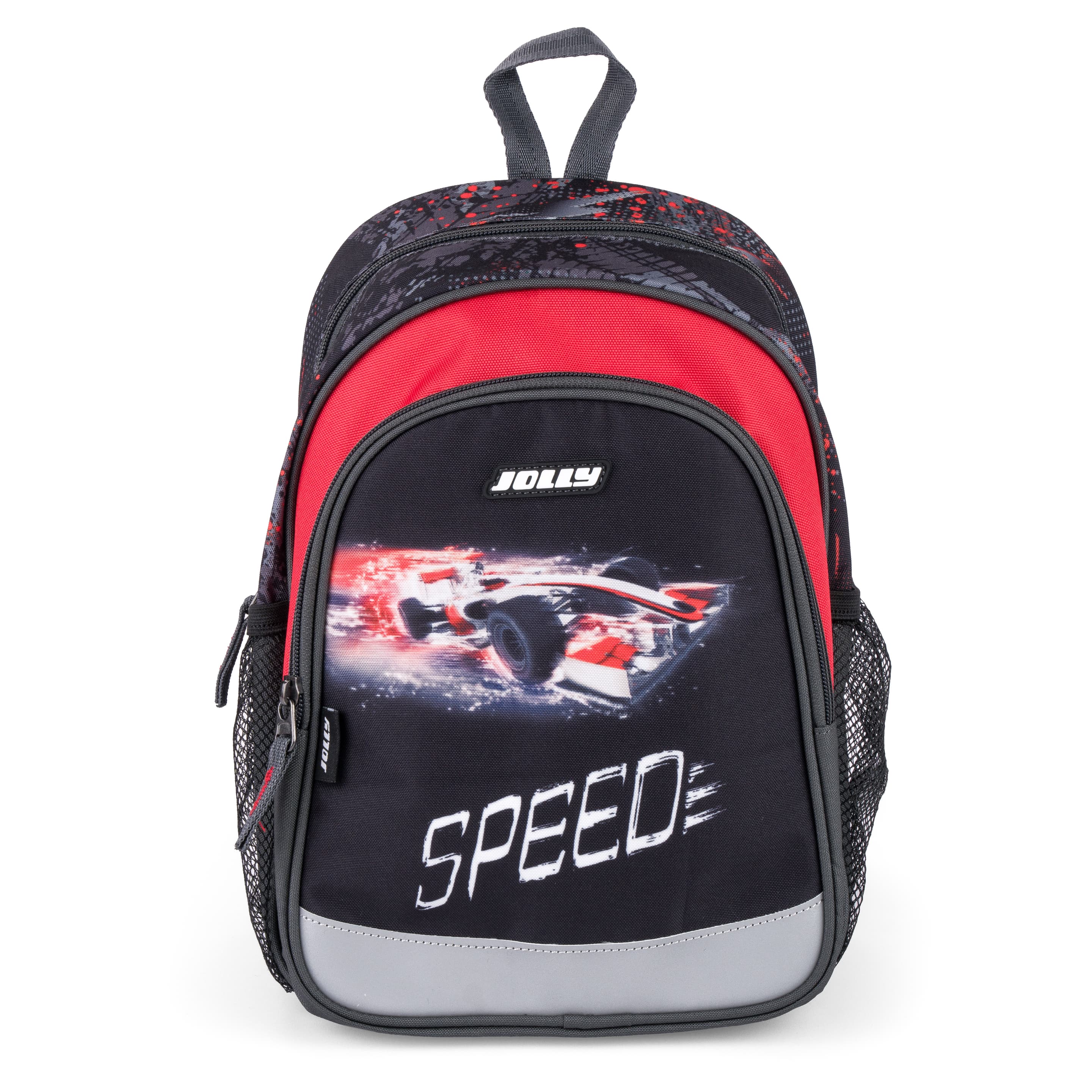 JOLLY Kindergartenrucksack 6tlg. Für Kindergarten und Freizeit • Hochwertige Verarbeitung • Rückenpolsterung für guten Tragekomfort • Verstellbarer Brustgurt • Reflektierende Sicherheitsstreifen für gute Sichtbarkeit • Geräumiges Hauptfach und separates Frontfach • Tragegriff • Zwei seitliche Netztaschen mit Gummizug für Trinkflasche • Füllvolumen ca. 7 Liter • 2 Jahre Garantie