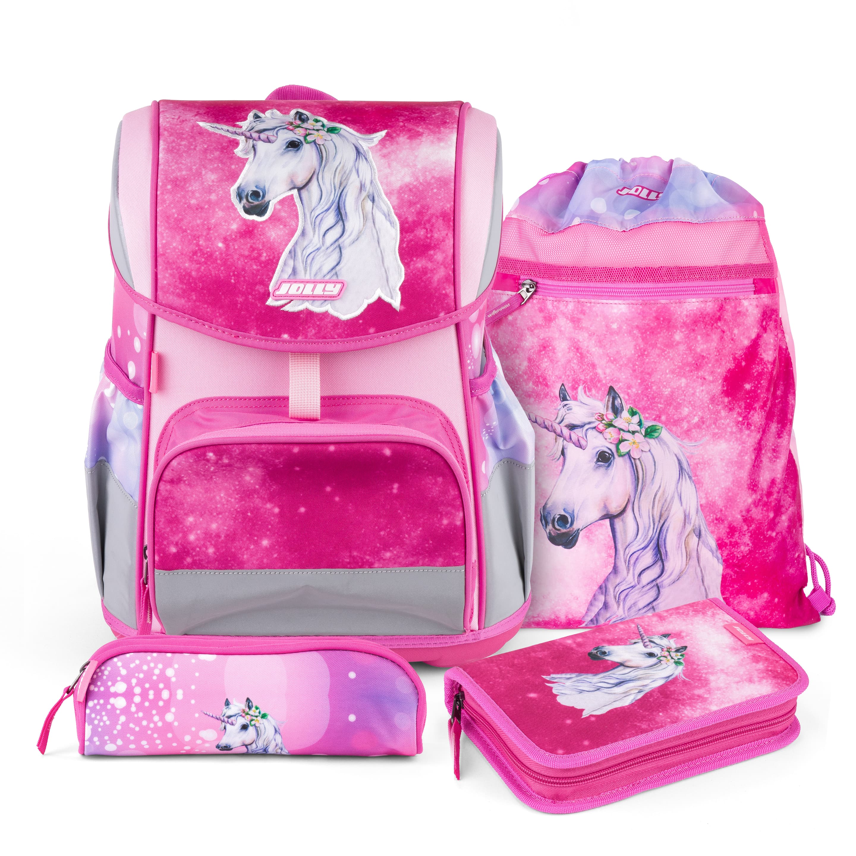 | Lieferumfang | 1 Jolly Schultasche Ergonomic Flexi, 1 Turnbeutel 1 Federpennal 1 Schülltelpennal 1 Jausenbox 1 Stundenplan 1 Lanyard 1 Jolly Back2School All in Box 31-teiling (12 Superstick Farbstifte Classic + 9 Farbstifte Sonderfarbe + 1 Graphitstift + 7 Fasermaler + 1 Holzlineal + 1 Radiergummi) 1 Zeichenblock A4 20 Blatt 1 Lineal 30 cm 1 Riesenradiergummi 3 Regenbogenstifte 1 Schlüsselanhänger 1 Stickerbogen |
