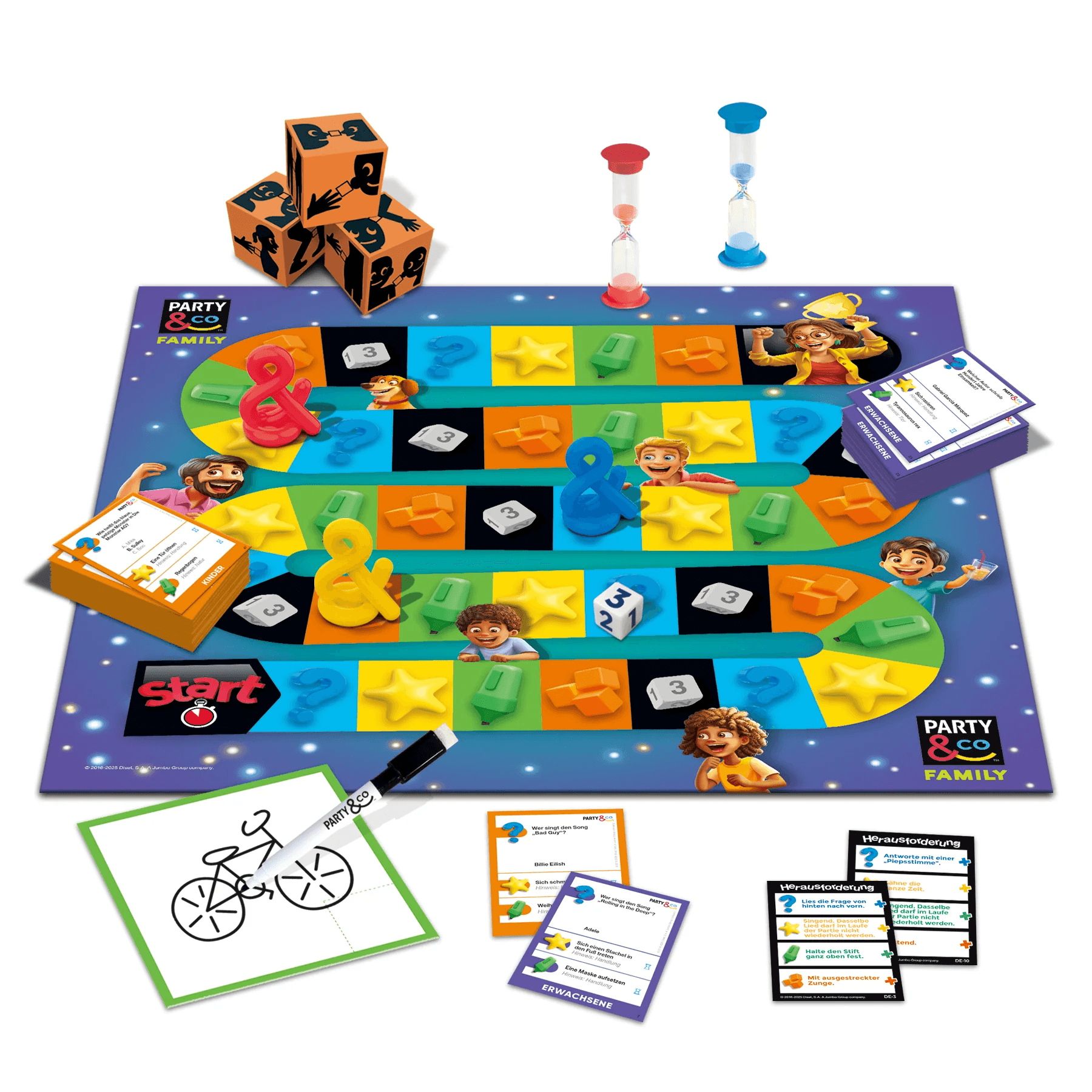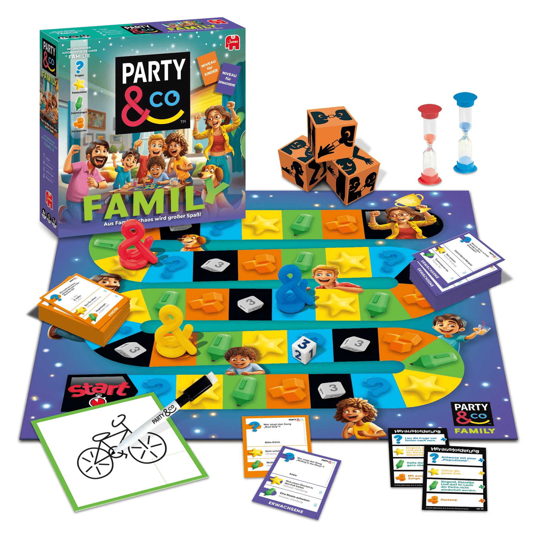 Mit Party & Co. Family wird jeder Spieleabend zum Highlight! Dieses unterhaltsame Gesellschaftsspiel bringt die ganze Familie zusammen und sorgt mit abwechslungsreichen Aufgaben aus den Bereichen Zeichnen, Pantomime, Quiz und mehr für jede Menge Spaß und Lacher. Dank der kindgerechten und erwachsenengerechten Spielmodi ist es ideal für gemischte Gruppen und generationenübergreifendes Spielen.