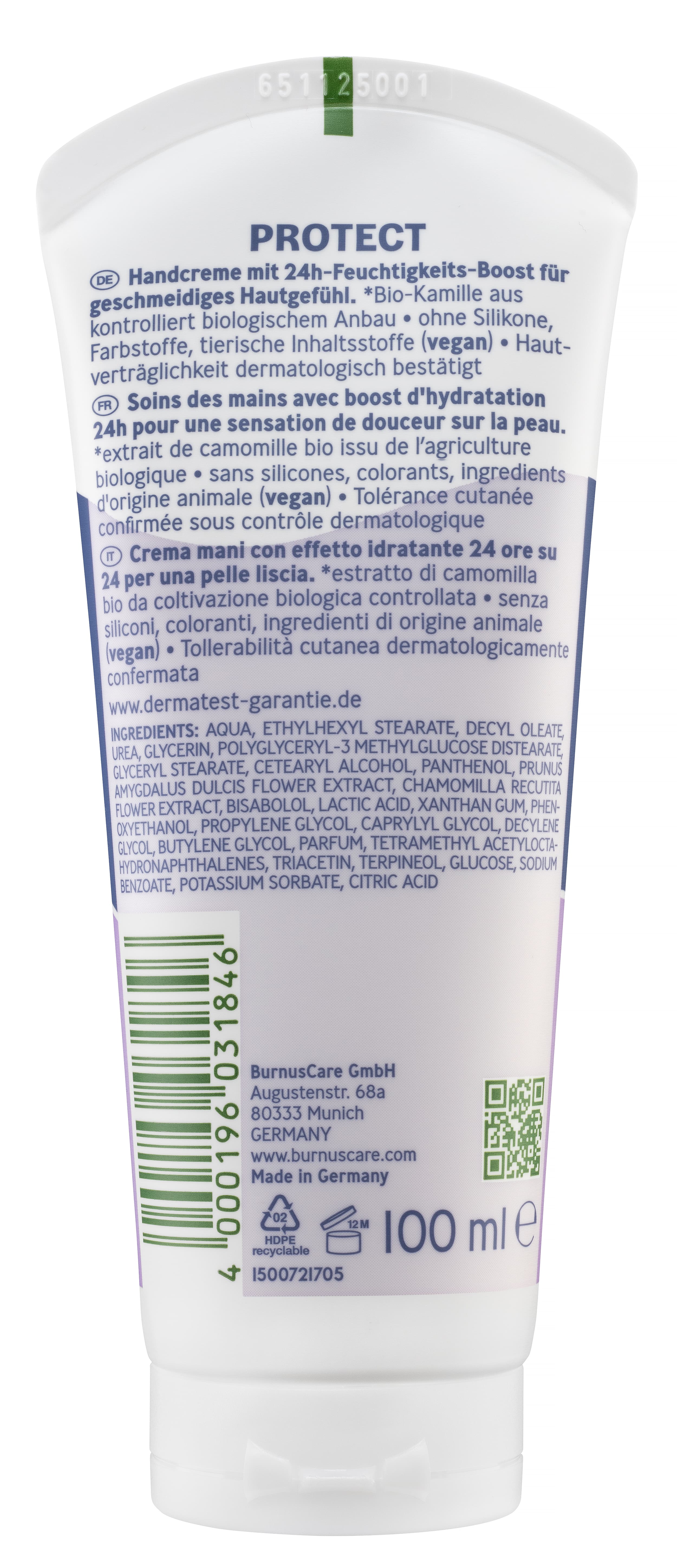 | Inhaltsstoffe | AQUA, ETHYLHEXYL STEARATE, DECYL OLEATE, UREA, GLYCERIN, POLYGLYCERYL-3 METHYLGLUCOSE DISTEARATE, GLYCERYL STEARATE, CETEARYL ALCOHOL, PANTHENOL, PRUNUS AMYGDALUS DULCIS FLOWER EXTRACT, CHAMOMILLA RECUTITA FLOWER EXTRACT, BISABOLOL, LACTIC ACID, XANTHAN GUM, PHENOXYETHANOL, PROPYLENE GLYCOL, CAPRYLYL GLYCOL, DECYLENE GLYCOL, BUTYLENE GLYCOL, PARFUM, TETRAMETHYL ACETYLOCTAHYDRONAPHTHALENES, TRIACETIN, TERPINEOL, GLUCOSE, SODIUM BENZOATE, POTASSIUM SORBATE, CITRIC ACID, TOCOPHEROL, HYDROGENATED VEGETABLE GLYCERIDES CITRATE |