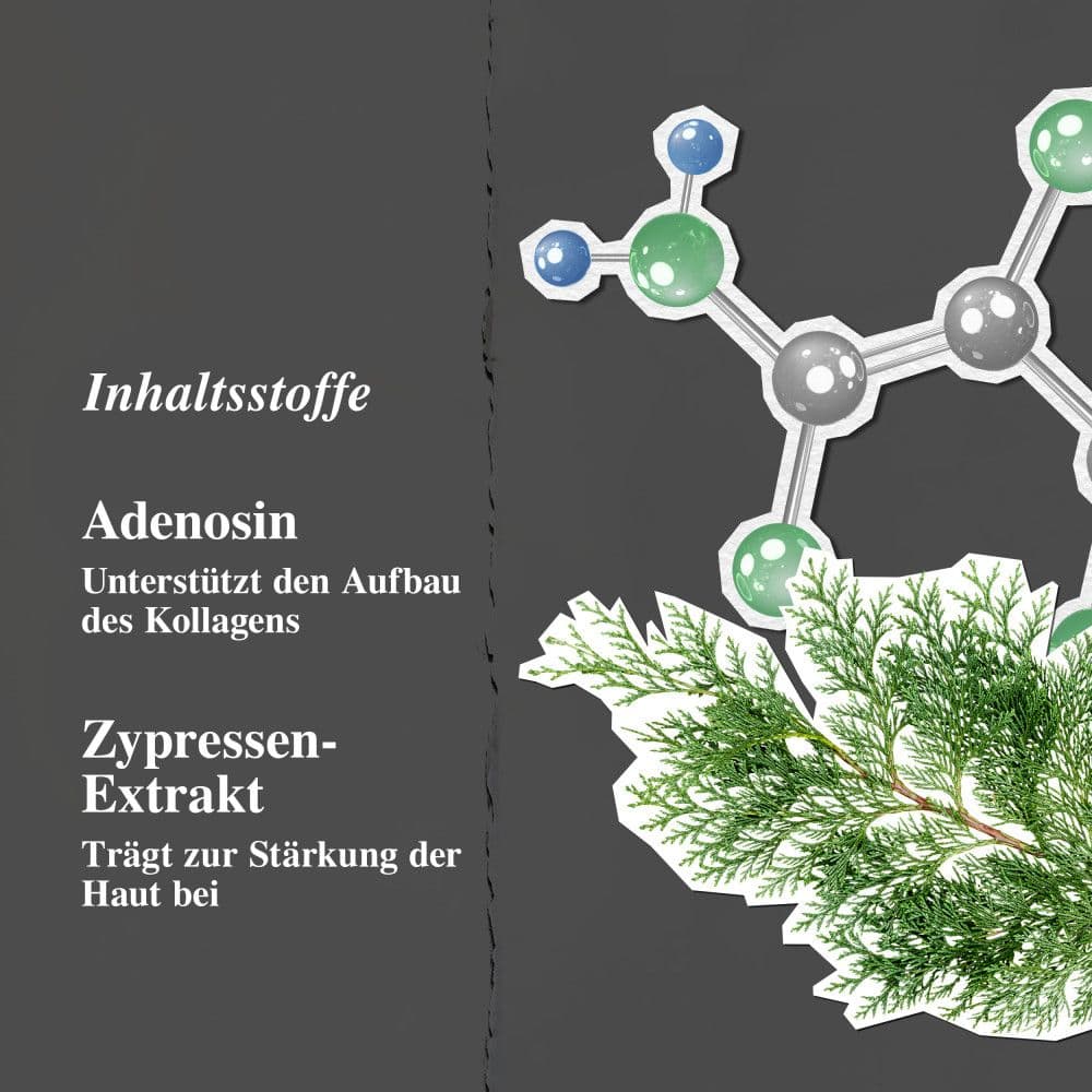 | Inhaltsstoffe | 685713 29 - INGREDIENTS: AQUA / WATER • GLYCERIN • DIMETHICONE • ALCOHOL DENAT. • ISONONYL ISONONANOATE • BUTYLENE GLYCOL • AMMONIUM POLYACRYLOYLDIMETHYL TAURATE • PHENOXYETHANOL • PENTYLENE GLYCOL • HYDROLYZED SOY PROTEIN • PARFUM / FRAGRANCE • HYDROXYPROPYL TETRAHYDROPYRANTRIOL • PROPYLENE GLYCOL • RUSCUS ACULEATUS ROOT EXTRACT • GLYCINE SOJA OIL / SOYBEAN OIL • CAFFEINE • TOCOPHEROL • HYDROLYZED RICE PROTEIN • LIMONENE • BIOSACCHARIDE GUM-1 • DISODIUM EDTA • ADENOSINE • T-BUTYL ALCOHOL • HYDROXYPALMITOYL SPHINGANINE • CRYPTOMERIA JAPONICA BUD EXTRACT • LINALOOL • CITRAL (F.I.L. D182605/1). |