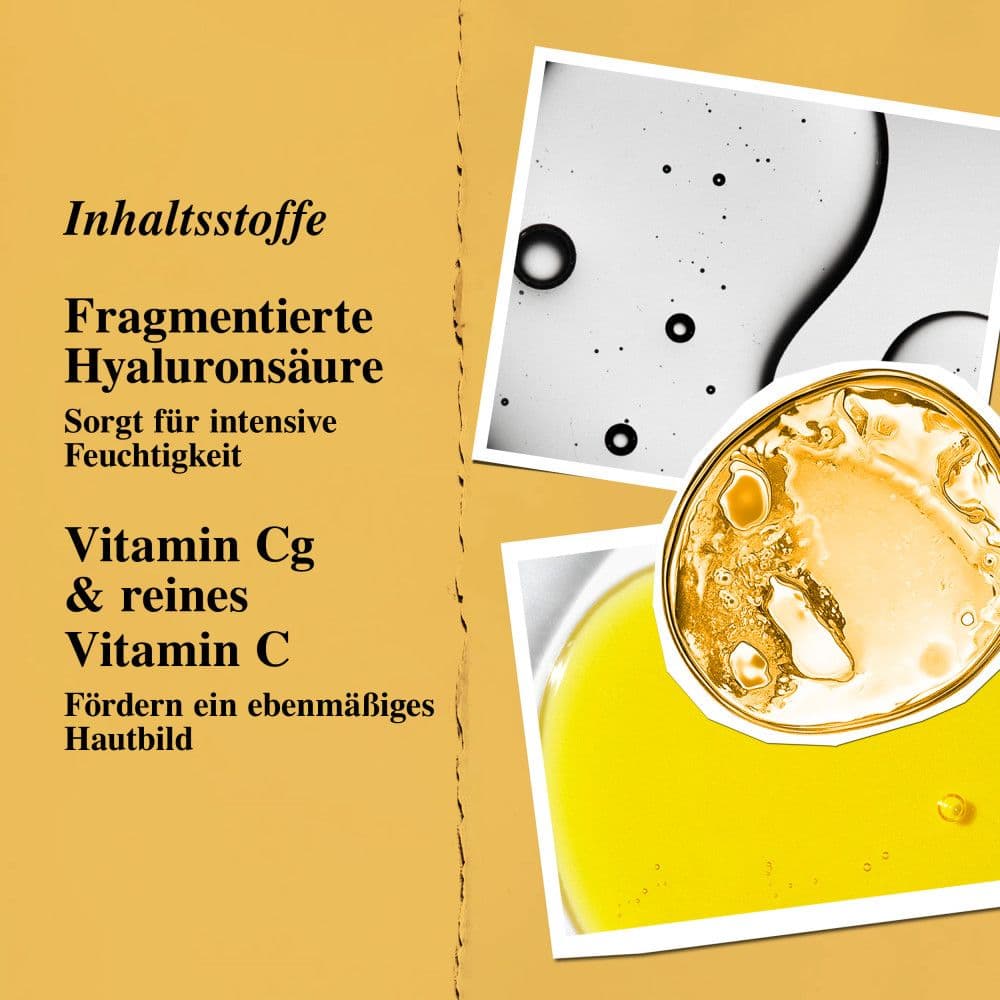Der Anti– Aging Bestseller besteht aus 10.5% purem Vitamin-C, welches den Kollagenaufbau der Haut fördert, um somit die Spannkraft der Haut nachhaltig unterstützt. Weitere 2% Vitamin Cg (Ascorbyl Glucosid) konnte für die Formel gewonnen werden, um langfristig und aktiv die Ebenmäßigkeit und die Ausstrahlung der Haut fördern zu können. Um das Erscheinen von Falten noch weiter zu verringern, basiert die Formel des neuen Powerful Strength Line Reducing Concentrates auf Hyaluronsäure.