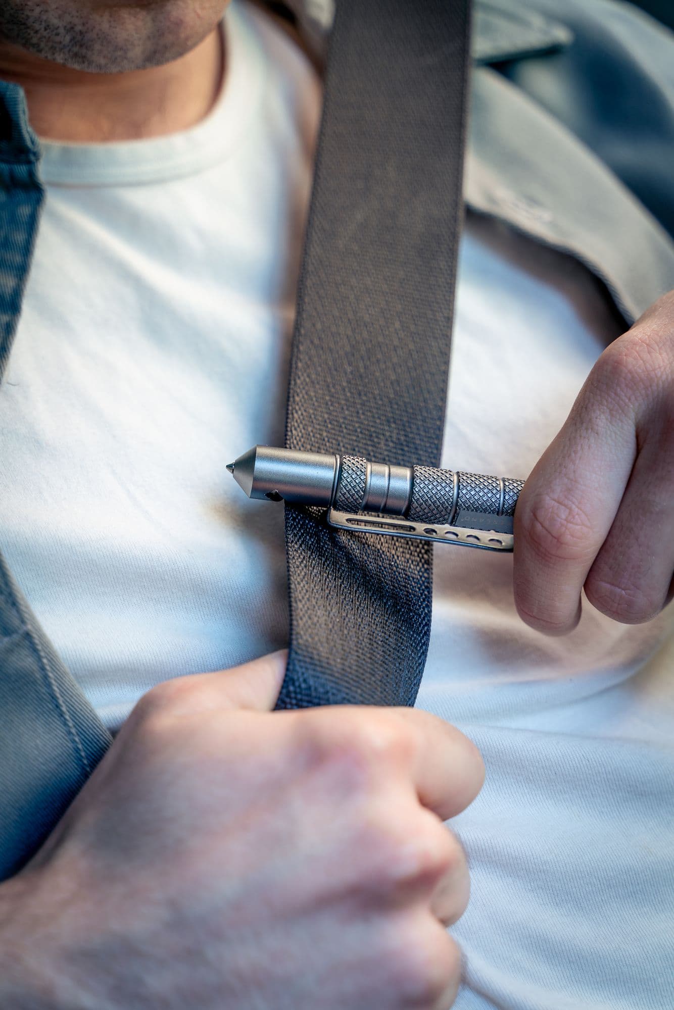 Mit diesem 3-in-1-Sicherheitsstift sind Sie auf der Straße bestens vorbereitet. Seine ultra-robuste Wolframstahlspitze bricht Glas, während die abgewinkelte Klinge Sicherheitsgurte durchtrennt, und er ist ein nachfüllbarer Stift in D1-Größe.