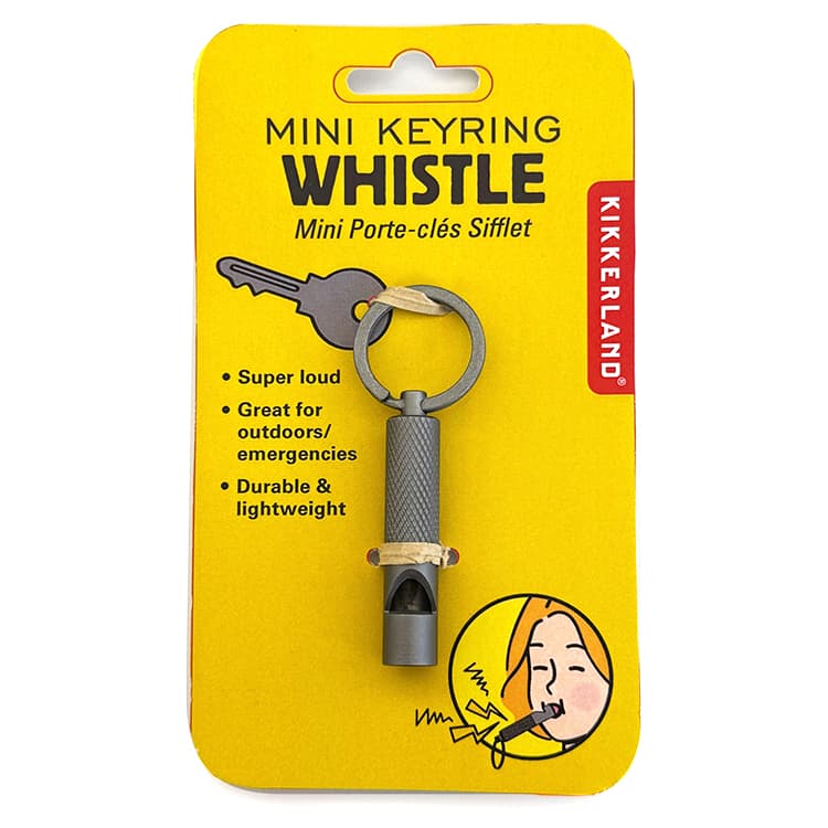 Praktische Mini-Pfeife zum Befestigen am Schlüsselbund, damit sie in Notfällen schnell zur Hand ist. Aus Aluminiumlegierung für lange Haltbarkeit.