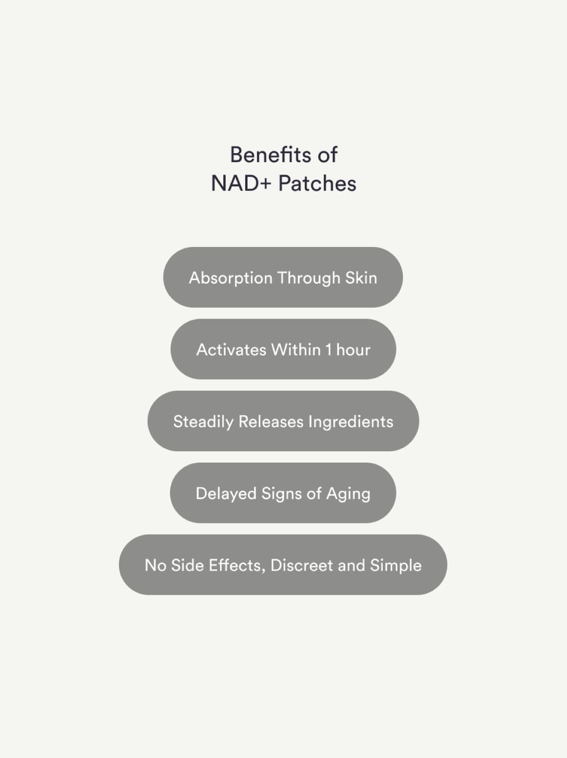 Die NAD+-Patches wurden entwickelt, um altersbedingten Prozessen entgegenzuwirken, die zelluläre Regeneration zu unterstützen und eine langanhaltende Vitalität zu fördern.