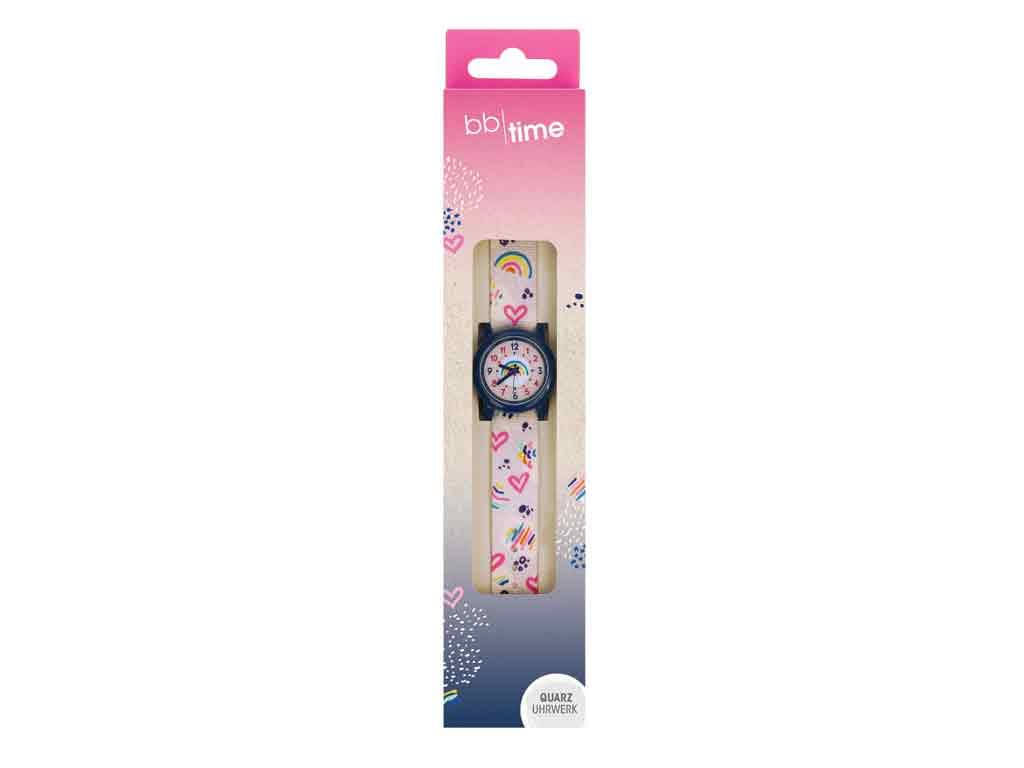 Spätestens zum Schulanfang möchten Kinder wissen, wie spät es ist. Diese liebevoll gestaltete Kinderuhr sorgt mit ihrem leicht lesbaren Ziffernblatt für den Durchblick! Perfekt drauf abgestimmt: das fantasievoll designte Textilarmband, angenehm weich und verstellbar– für besten Tragekomfort am Kinderarm. So begeistert der coole und trendige Look Mädchen und Jungen gleichermaßen. Mit hochwertiger Edelstahl-Verschlussschnalle und integriertem Quarzuhrwerk.