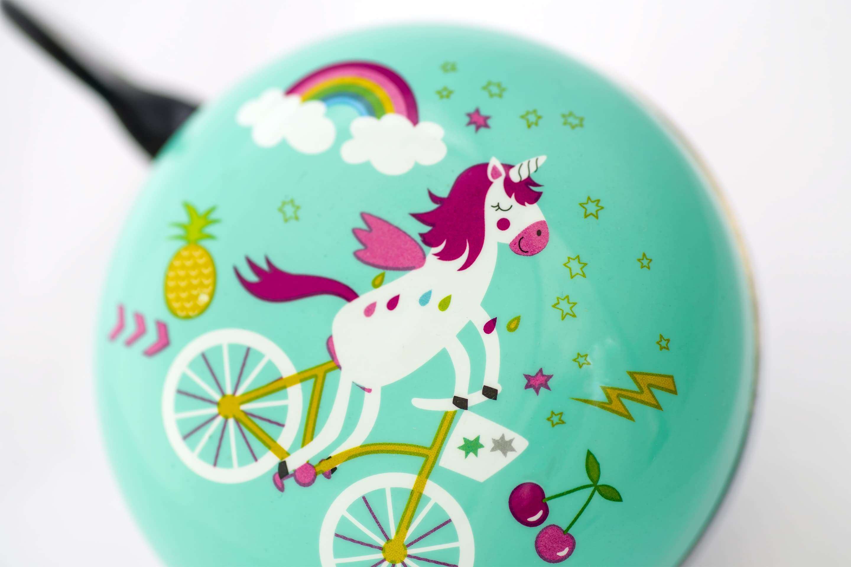 Tolle XXL Fahrradklingel mit sattem Ding Dong Klang. Der glänzend lackierte Klingelkörper und das gedruckte, wetterfest Motiv, bringen frischen Wind an den Fahrradlenker.