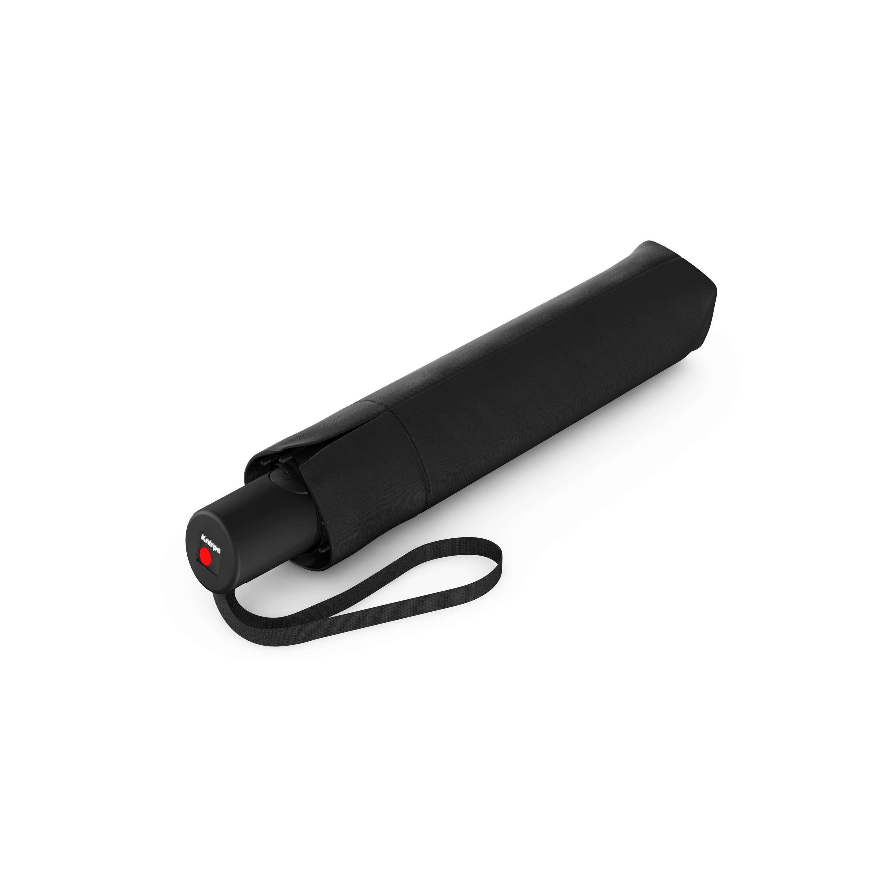 Der Knirps Taschenschirm Duomatic ist durch sein angenehmes, automatischesÖffnen und Schließen mithilfe der großen Drucktaste und sein sportliches Gestell in schwarz der perfekte Begleiter für Ihren Alltag. Der Schirm ist sehr robust und hält Windgeschwindigkeiten im Windkanal von bis zu 120 km/h stand. Durch seine Länge im zusammengelegten Zustand von 28 cm und sein leichtes Gewicht von 360 g eignet sich der Knirps Duomatic super für unterwegs. Auch die Trageschlaufe am Griff sorgt dabei für einen mühelosen Transport. Trotz der kompakten Form hat er ein angenehm großes Schirmdach mit einem Durchmesser von 98 cm.