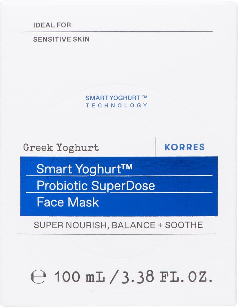 Durch die SMART YOGHURT™-Technologie passt sich diese Gesichtsmaske den vielfältigen Bedürfnissen der Haut an. Sie stellt das Gleichgewicht des gestressten Mikrobioms wieder her und stärkt die natürliche Hautbarriere. Mit unserer bislang höchsten Konzentration an echtem griechischem Joghurt (6 %) pflegt, beruhigt und erfrischt sie die Haut und schenkt trockener, fahler und müde aussehender Haut sofortige Kühlung.