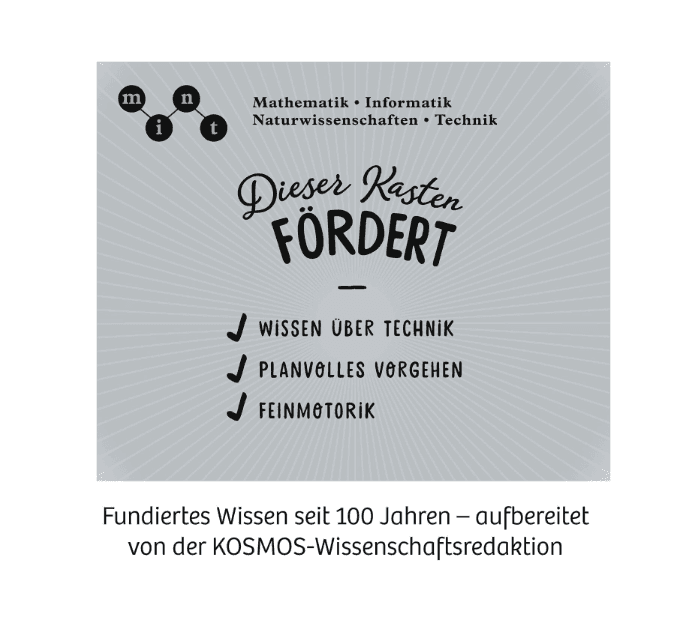 Dieser Experimentierkasten von KOSMOS ist ein pfiffiges Geschenk für Kinder von acht bis zwölf Jahren mit langanhaltendem Spielspaß und erstem Wissen aus Physik und Technik.