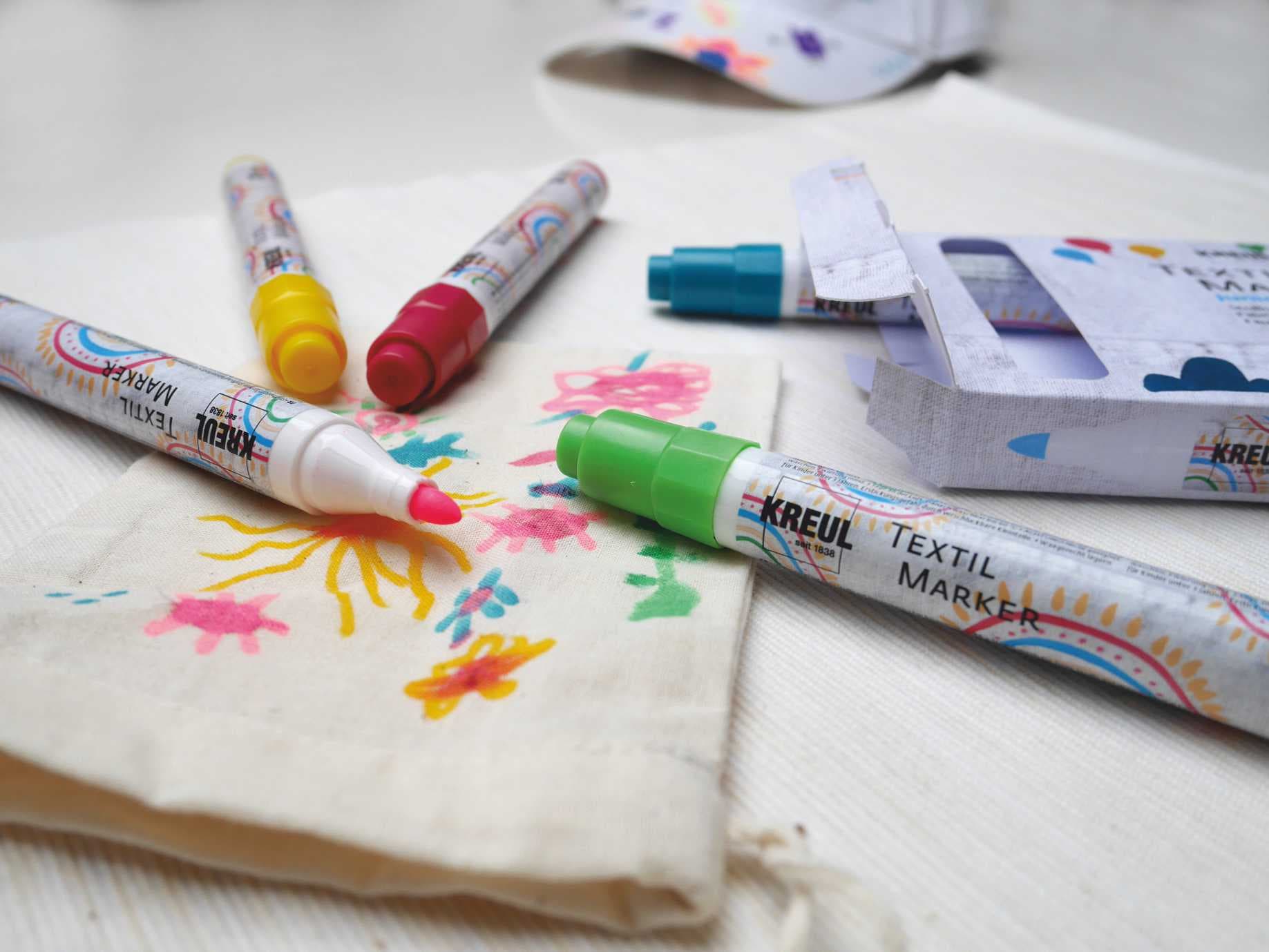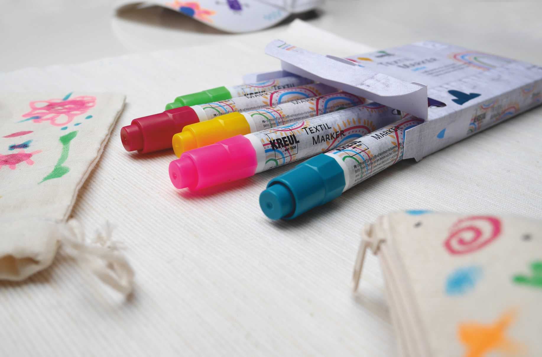 Mit fünf Farbtönen malen kreative Kids coole Stoff-Kunstwerke. Die Stoffmalstifte sind so robust und unkompliziert wie Filzstifte. Aber extra für Textilien! Das Beste: Das Malen mit dem KREUL Textil Marker medium Junior 5er Set ist kinderleicht und perfekt zum gleich loslegen. Die farbenfrohen Stoffmalstifte funktionieren schließlich ohne Schütteln und Pumpen.
