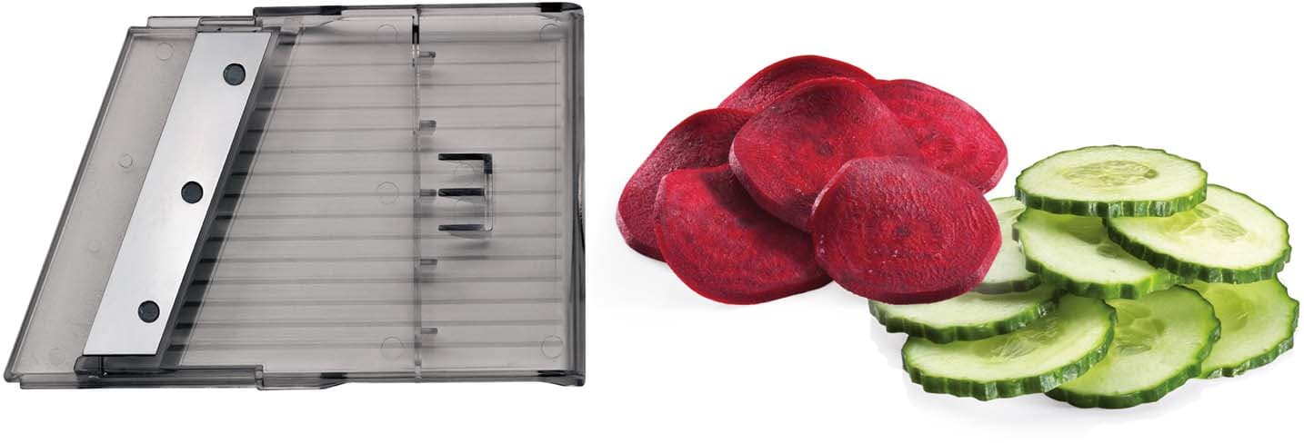 • Verstellbare Schnittstärke für vielseitige Zubereitungsmöglichkeiten