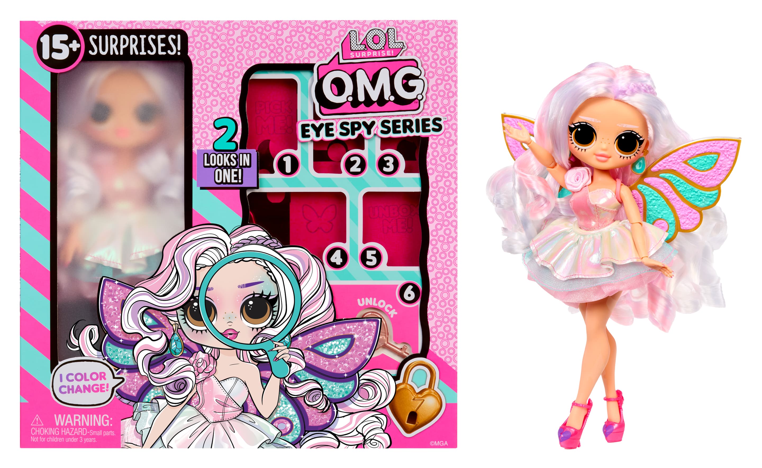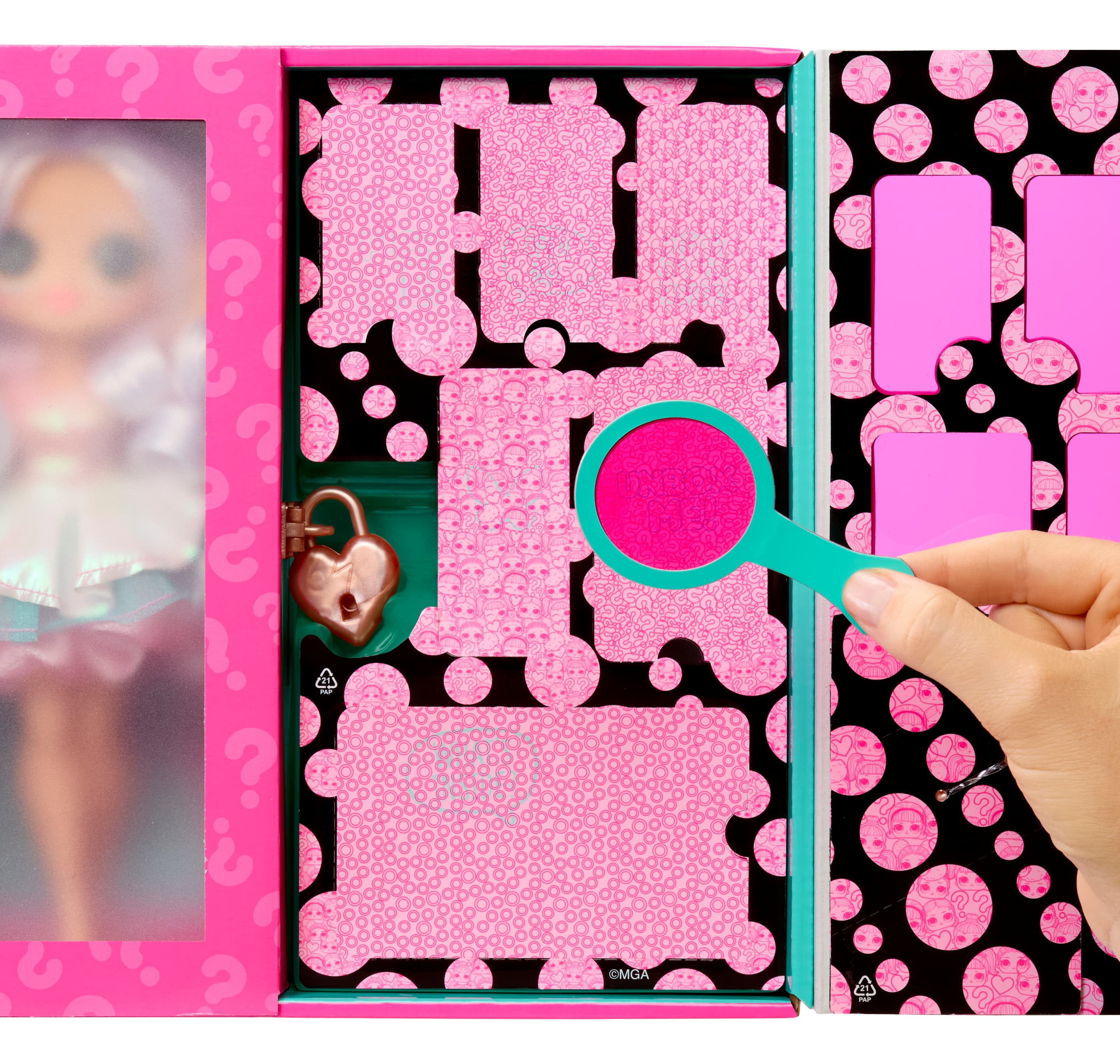 Interaktives Playset mit einer OMG-Puppe! Finde die versteckten Hinweise und knacke den Code, um die Puppe zu befreien. Mit ihrem magischen Farbwechsel und den stylischen Outfits sowie coolen Accessoires sorgt sie für noch mehr Spielspaß und Überraschungen! Welche geheime Identität verbirgt sich?