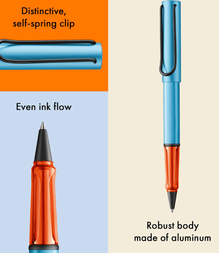 Leicht, leichter, LAMY AL-star: Der Schreibklassiker aus widerstandsfähigem Aluminium meistert alle Herausforderungen des Alltags mit Eleganz. Das transparente Griffstück liegt angenehm in der Hand und macht mit freiem Blick auf den Tintenleiter das Funktionale zum optischen Highlight. Die Serie begeistert immer wieder mit neuen Spezialeditionen in aktuellen Trendfarben und darf somit als inspirierender Akzent in keinem Stifte-Etui fehlen. Leichtgewichtiger Tintenroller mit ergonomischem Griffstück aus hochwertigem transparentem Kunststoff. Markanter Clip aus Metall und widerstandsfähiges Gehäuse aus eloxiertem Aluminium. Inklusive Tintenrollermine LAMY M 63 in Strichbreite M