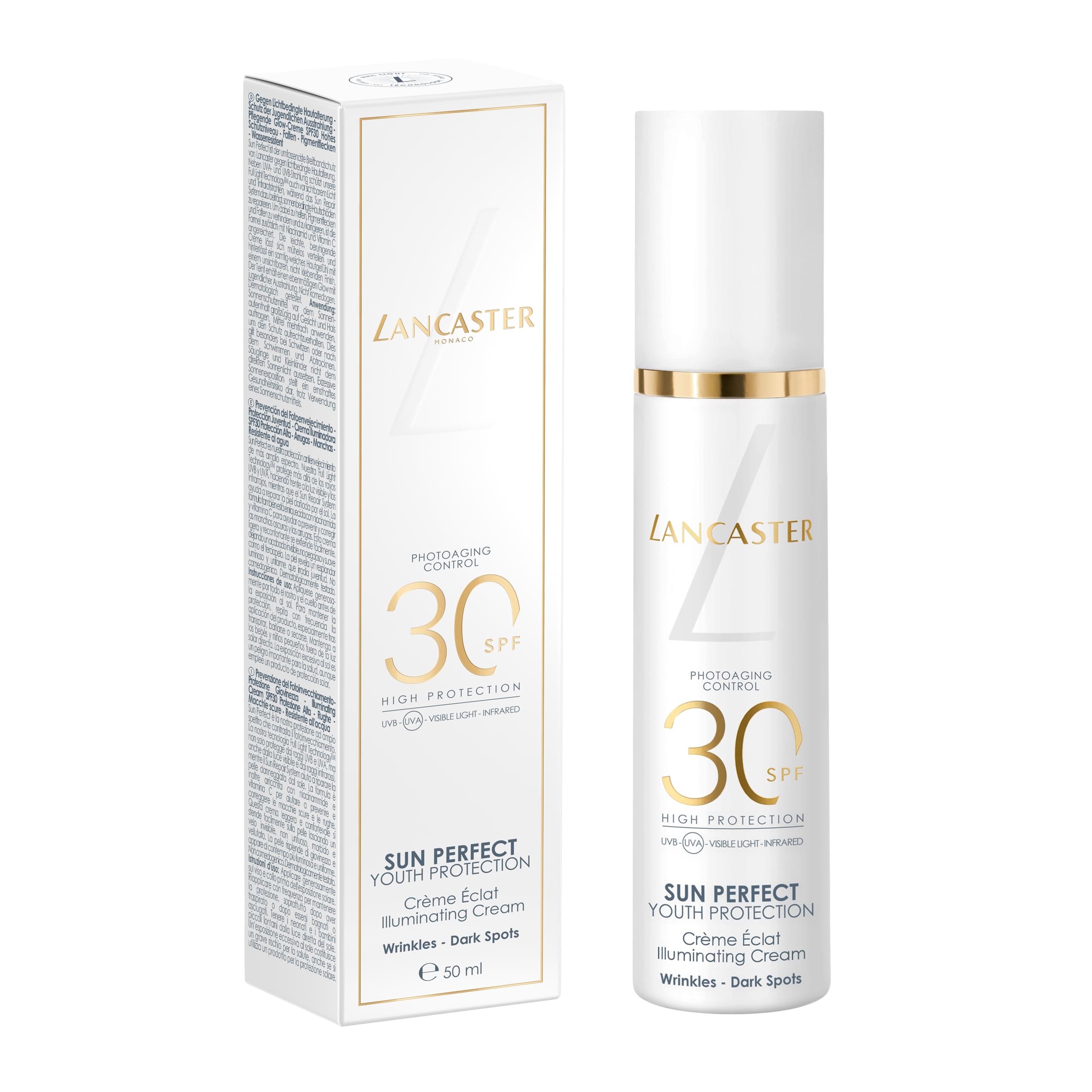 Sun Perfect ist die fortschrittlichste umfassende Anti-Aging-Sonnenpflegelinie von Lancaster, die Sonnen- und Hautpflege-Expertise für den ganzjährigen Gebrauch kombiniert. Ihre Full-Light- und ihre Anti-Aging-Technologien sorgen für breitesten Schutz, während sie dazu beitragen, Falten, feine Linien und Pigmentflecken vorzubeugen und zu korrigieren.