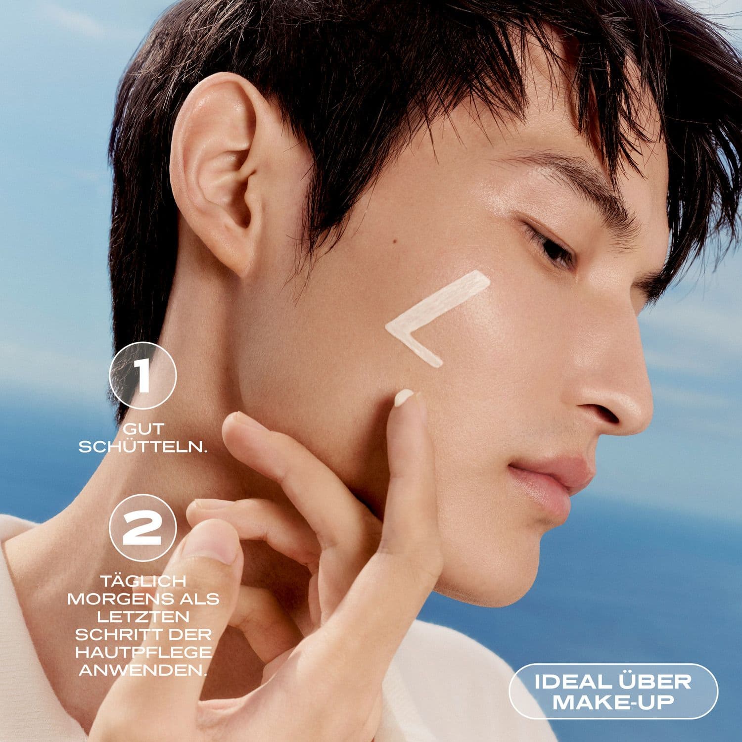 | Anwendungshinweis | DAS PORENVERKLEINERNDE GESICHTSFLUID VOR GEBRAUCH GUT SCHÜTTELN. Verwende dieses Gesichtsfluid mit LSF 50 täglich am Ende deiner morgendlichen Gesichtshautpflegeroutine, bevor du Make-up aufträgst. Wiederhole die Anwendung häufig, um den Schutz aufrechtzuerhalten. Übermäßige Sonneneinwirkung stellt eine ernsthafte Gesundheitsgefährdung dar, selbst mit Verwendung eines Sonnenschutzproduktes. Bitte recycle die Umverpackung und die leere Tube den örtlichen Entsorgungsrichtlinien entsprechend. |