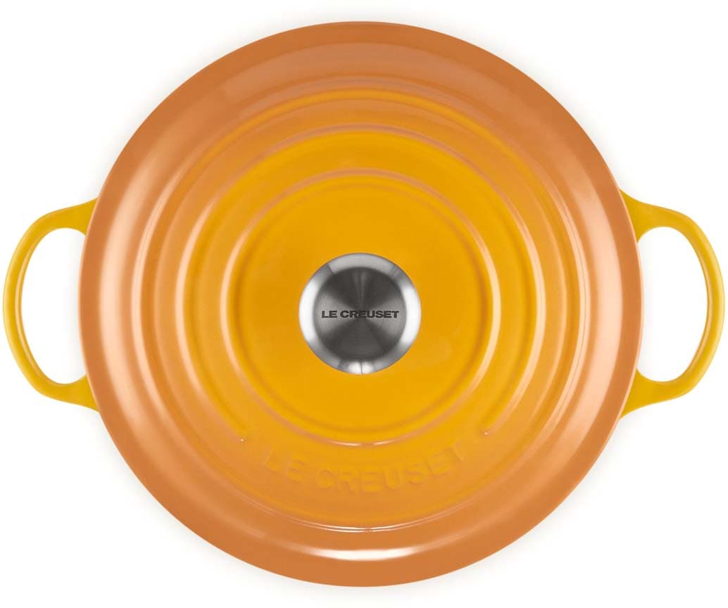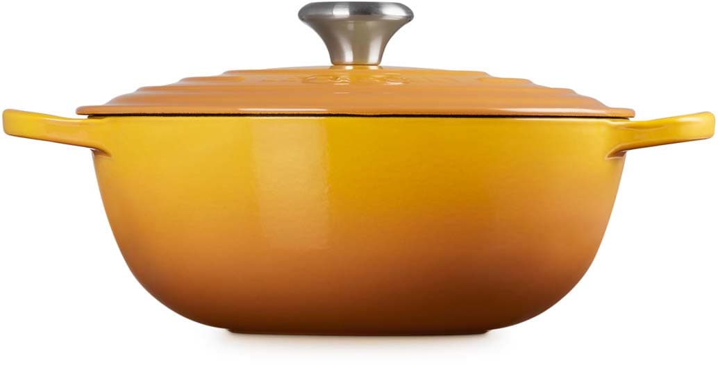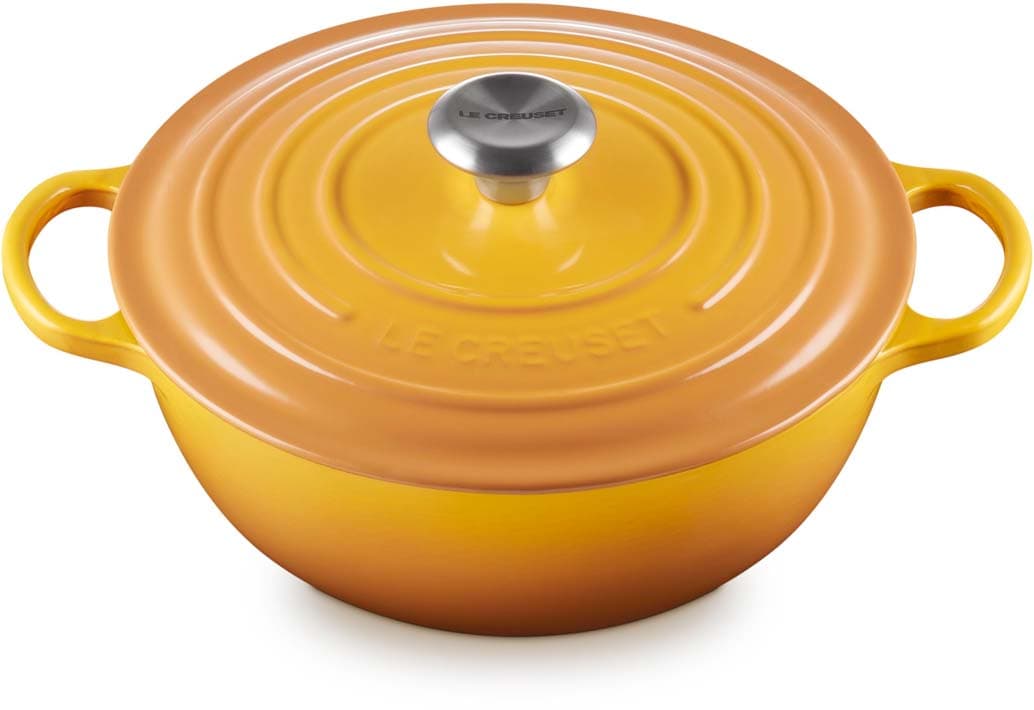 Der gusseiserne La Marmite von Le Creuset mit 26 cm Durchmesser ist ideal für Gerichte, die langsam und gleichmäßig gegart werden sollen. Ihre hohe, runde Form sorgt für optimale Flüssigkeitszirkulation und macht sie zur ersten Wahl für aromatische Suppen, Ragouts oder Currys. Dank des großzügigen Fassungsvermögens eignet sich der La Marmite auch hervorragend für Familienportionen oder festliche Mahlzeiten.