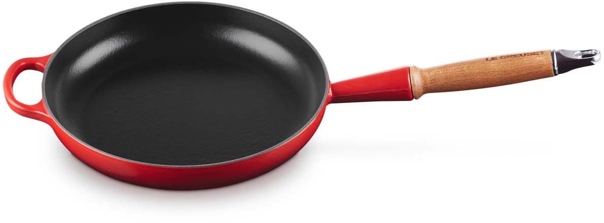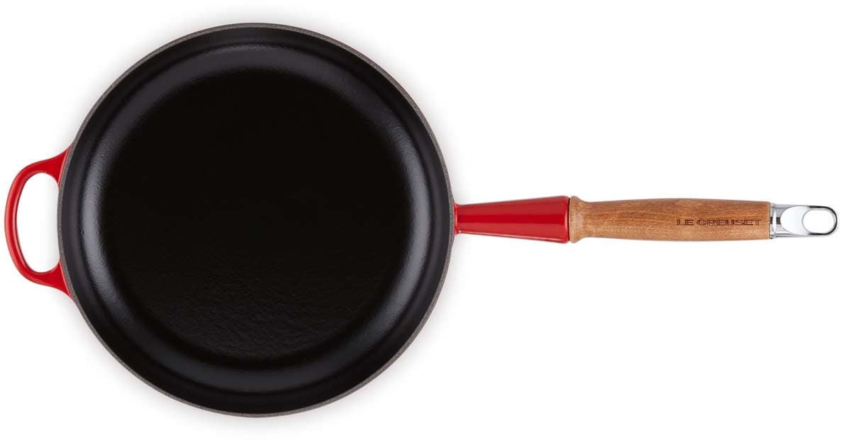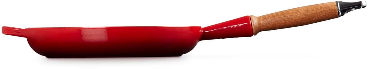Die Bratpfanne verfügt über einen ergonomischen Holzgriff, der ein sicheres und komfortables Handling ermöglicht. Die robuste und langlebige Emaillierung sorgt für eine einfache Reinigung und schützt das Gusseisen vor Abnutzung. Das Material gewährleistet eine gleichmäßige Wärmeverteilung, sodass Speisen optimal gegart werden. Die farbenfrohe Emaillierung ergänzt jeden Küchenstil und macht die Bratpfanne zu einem echten Blickfang.