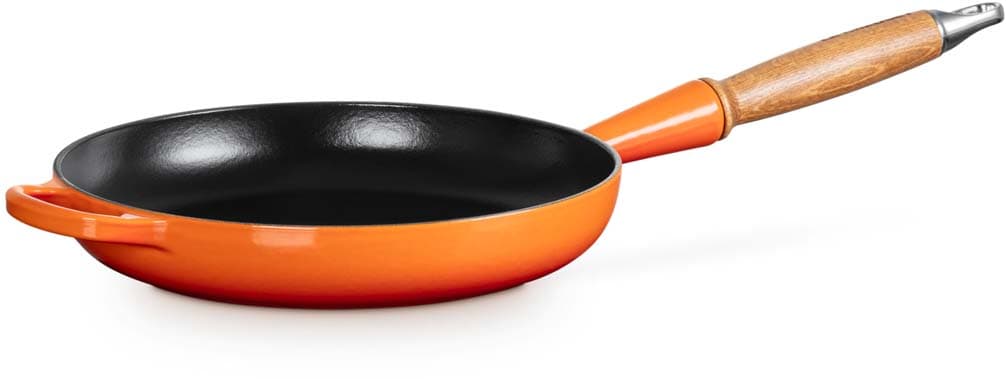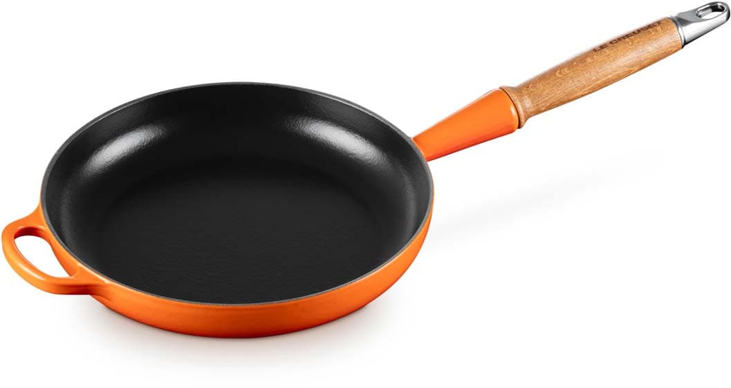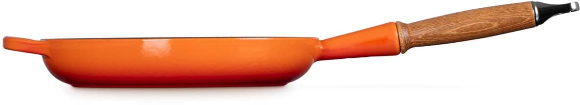 Die Bratpfanne verfügt über einen ergonomischen Holzgriff, der ein sicheres und komfortables Handling ermöglicht. Die robuste und langlebige Emaillierung sorgt für eine einfache Reinigung und schützt das Gusseisen vor Abnutzung. Das Material gewährleistet eine gleichmäßige Wärmeverteilung, sodass Speisen optimal gegart werden. Die farbenfrohe Emaillierung ergänzt jeden Küchenstil und macht die Bratpfanne zu einem echten Blickfang.