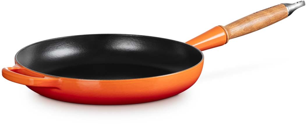 Die Bratpfanne verfügt über einen ergonomischen Holzgriff, der ein sicheres und komfortables Handling ermöglicht. Die robuste und langlebige Emaillierung sorgt für eine einfache Reinigung und schützt das Gusseisen vor Abnutzung. Das Material gewährleistet eine gleichmäßige Wärmeverteilung, sodass Speisen optimal gegart werden. Die farbenfrohe Emaillierung ergänzt jeden Küchenstil und macht die Bratpfanne zu einem echten Blickfang.