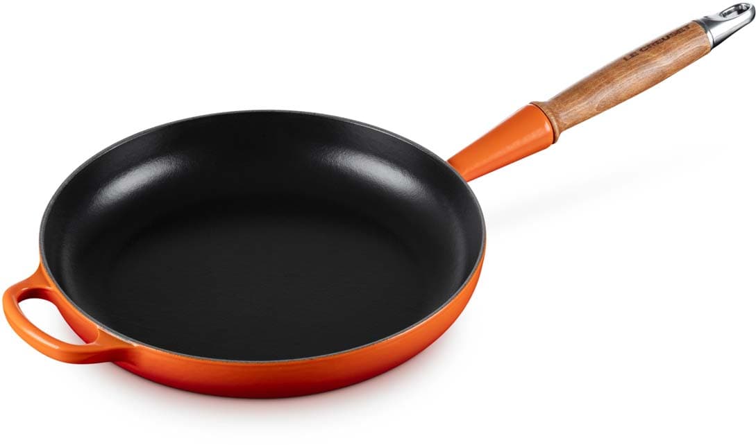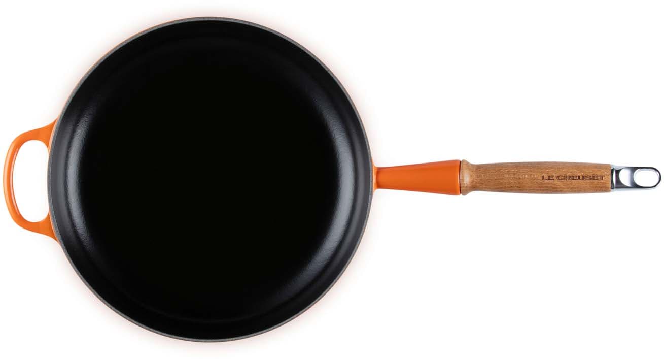 Die Bratpfanne Signature von Le Creuset mit 24 cm Durchmesser und elegantem Holzgriff ist ideal für das scharfe Anbraten von Fleisch, das Braten von Gemüse oder das Zubereiten von Pfannengerichten. Ihr flaches Design sorgt für eine gleichmäßige Hitzeverteilung und ermöglicht eine perfekte Bräunung. Der ergonomische Holzgriff liegt angenehm in der Hand und verleiht der Pfanne einen warmen, natürlichen Look. Ob für schnelle Mahlzeiten oder raffinierte Gerichte – diese Bratpfanne ist ein unverzichtbares Werkzeug in jeder Küche.