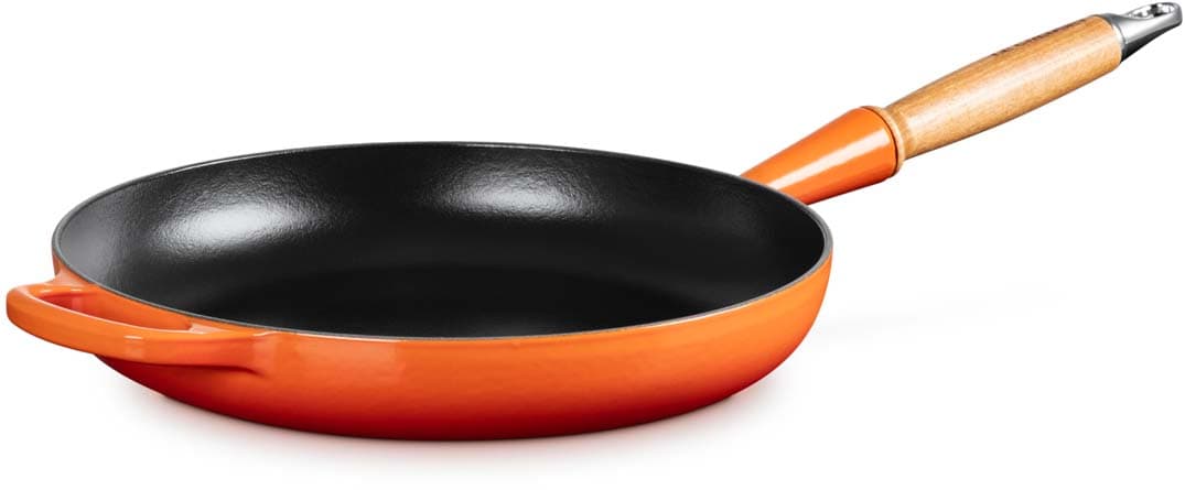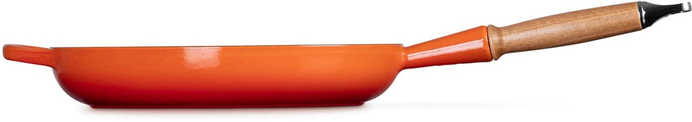 Die Bratpfanne verfügt über einen ergonomischen Holzgriff, der ein sicheres und komfortables Handling ermöglicht. Die robuste und langlebige Emaillierung sorgt für eine einfache Reinigung und schützt das Gusseisen vor Abnutzung. Das Material gewährleistet eine gleichmäßige Wärmeverteilung, sodass Speisen optimal gegart werden. Die farbenfrohe Emaillierung ergänzt jeden Küchenstil und macht die Bratpfanne zu einem echten Blickfang.
