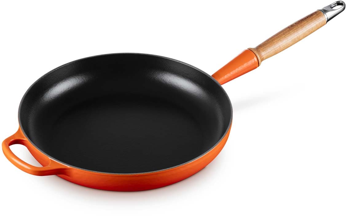 Die Bratpfanne Signature von Le Creuset mit 28 cm Durchmesser und elegantem Holzgriff ist ideal für das scharfe Anbraten von Fleisch, das Braten von Gemüse oder das Zubereiten von Pfannengerichten. Ihr flaches Design sorgt für eine gleichmäßige Hitzeverteilung und ermöglicht eine perfekte Bräunung. Der ergonomische Holzgriff liegt angenehm in der Hand und verleiht der Pfanne einen warmen, natürlichen Look. Ob für schnelle Mahlzeiten oder raffinierte Gerichte – diese Bratpfanne ist ein unverzichtbares Werkzeug in jeder Küche.