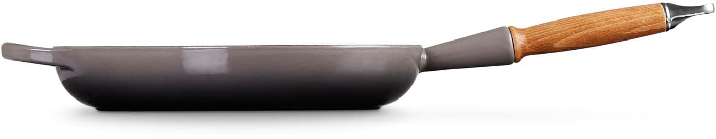 Die Bratpfanne verfügt über einen ergonomischen Holzgriff, der ein sicheres und komfortables Handling ermöglicht. Die robuste und langlebige Emaillierung sorgt für eine einfache Reinigung und schützt das Gusseisen vor Abnutzung. Das Material gewährleistet eine gleichmäßige Wärmeverteilung, sodass Speisen optimal gegart werden. Die farbenfrohe Emaillierung ergänzt jeden Küchenstil und macht die Bratpfanne zu einem echten Blickfang.