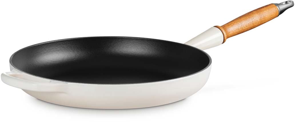 Die Bratpfanne verfügt über einen ergonomischen Holzgriff, der ein sicheres und komfortables Handling ermöglicht. Die robuste und langlebige Emaillierung sorgt für eine einfache Reinigung und schützt das Gusseisen vor Abnutzung. Das Material gewährleistet eine gleichmäßige Wärmeverteilung, sodass Speisen optimal gegart werden. Die farbenfrohe Emaillierung ergänzt jeden Küchenstil und macht die Bratpfanne zu einem echten Blickfang.