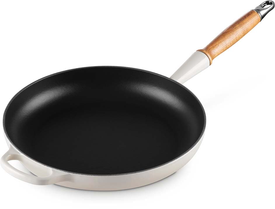 Die Bratpfanne Signature von Le Creuset mit 28 cm Durchmesser und elegantem Holzgriff ist ideal für das scharfe Anbraten von Fleisch, das Braten von Gemüse oder das Zubereiten von Pfannengerichten. Ihr flaches Design sorgt für eine gleichmäßige Hitzeverteilung und ermöglicht eine perfekte Bräunung. Der ergonomische Holzgriff liegt angenehm in der Hand und verleiht der Pfanne einen warmen, natürlichen Look. Ob für schnelle Mahlzeiten oder raffinierte Gerichte – diese Bratpfanne ist ein unverzichtbares Werkzeug in jeder Küche.