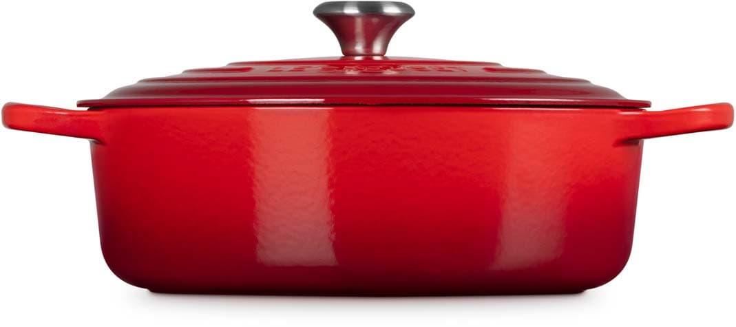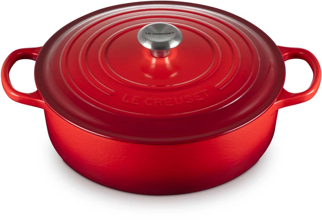 Der Gourmet-Bräter Signature von Le Creuset mit 30 cm Durchmesser ist ideal für Risotto, köstliche Pasta oder sogar frisch gebackenes Brot. Dank des niedrigen Rands und des breiten Bodens lässt sich mühelos rühren, während das Gusseisen für eine gleichmäßige Wärmeverteilung sorgt. Ob Braten, Schmoren oder Backen – dieser Bräter ist ein echter Allrounder für anspruchsvolle Rezepte.