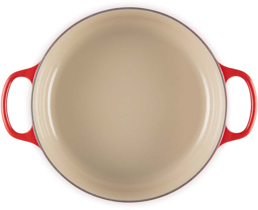 Sonderfunktion• Mittlere oder niedrige Hitze liefert die besten Ergebnisse beim Kochen, auch beim Braten und Anbraten. Die Benutzung von Le Creuset Silikon-Accessoires oder Kochutensilien aus hitzebeständigem Kunststoff oder Holz wird empfohlen. • Für gleichmäßig gegarte Speisen sollte die Auflagefläche des Produktes der Größe des Kochfeldes entsprechen. Dadurch wird zudem das Risiko einer Beschädigung der Griffe und Seiten des Produktes gemindert. • Für Gusseisenprodukte mit einer hellen Innenemaille gilt: das Produkt niemals leer erhitzen. • Empfohlene Öle: Pflanzen-, Raps- und Sonnenblumenöl. • Das Produkt niemals über eine Glas- oder Glaskeramikoberfläche o.ä. ziehen. Um Beschädigung der Oberflächen zu vermeiden, stets anheben. • Geeignet für den Backofen und den Backofen mit Grillfunktion bis 260 °C. Der Mindestabstand zum Grill im Backofen beträgt 6,5 cm. • Beim Umgang mit heißen Produkten stets Ofenhandschuhe verwenden. • Das Produkt vor der Reinigung abkühlen lassen. Bei zu schnellem Abwaschen kann ein Thermoschock auftreten, der zu Rissen oder zum Abplatzen der Emaille führen kann. • Reinigung von Hand empfohlen. • Geeignet für alle Herdarten, den Gefrierschrank und die Spülmaschine.