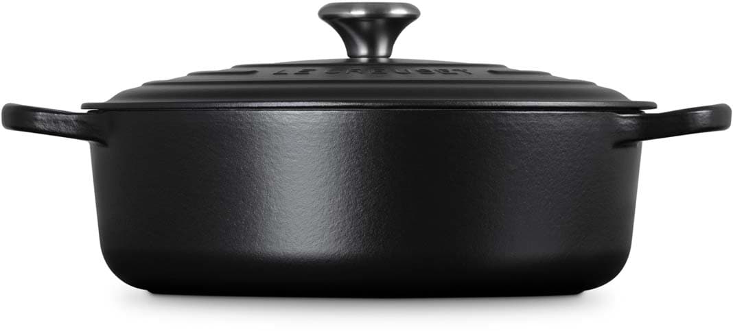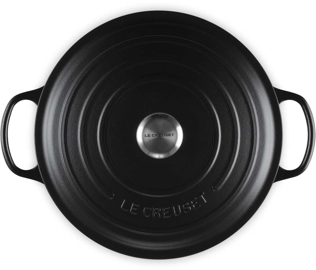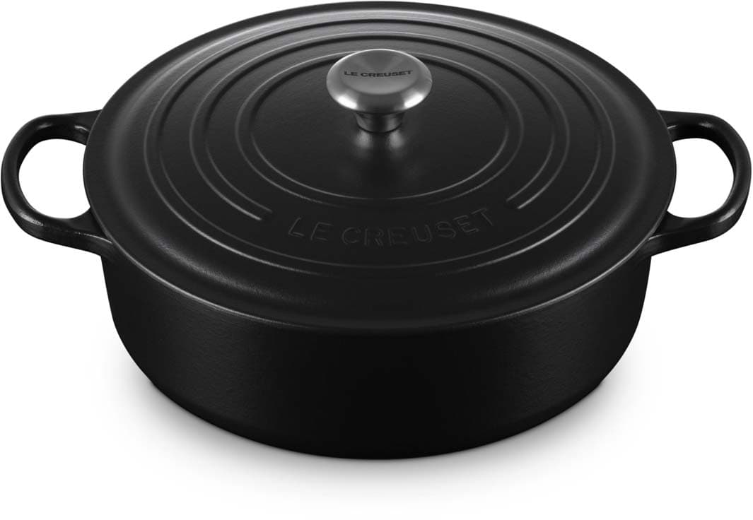 Der Gourmet-Bräter Signature von Le Creuset mit 30 cm Durchmesser ist ideal für Risotto, köstliche Pasta oder sogar frisch gebackenes Brot. Dank des niedrigen Rands und des breiten Bodens lässt sich mühelos rühren, während das Gusseisen für eine gleichmäßige Wärmeverteilung sorgt. Ob Braten, Schmoren oder Backen – dieser Bräter ist ein echter Allrounder für anspruchsvolle Rezepte.